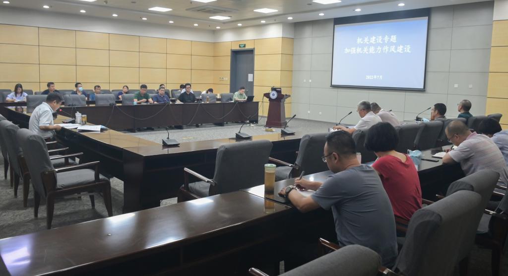 7月13日上午,我校召开2022年暑期工作研讨会机关能力作风建设专题会。会议由机关党委书记叶佳林主持。机关各职能部门负责人,图书馆、后勤处、离退休工作处负责人参加。