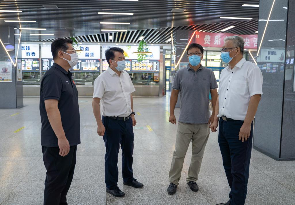 学校高度重视学生开学返校工作,多次召开专题会议进行部署,要求各单位部门严守阵地、履职尽责,全力确保秋季学期开学顺利平安稳定。8月19日,校领导史庆伟、白海力、崔雅利等一行先后深入学校南门、隔离点、在建工地、职工公寓、学生公寓区、经管学院、食堂等11个重要点位,围绕开学前准备、疫情防控、校园安全工作落实,校园环境改善等方面,看现场、问情况、提要求。