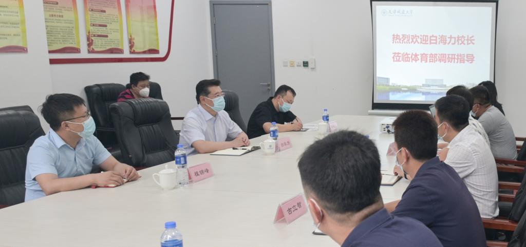 为全面贯彻党的教育方针,落实立德树人根本任务,提升学校体育教育教学水平,加快学科和师资队伍建设,做好聘期考核工作,持续推进学校事业高质量发展,6月8日下午校长白海力到体育部调研。