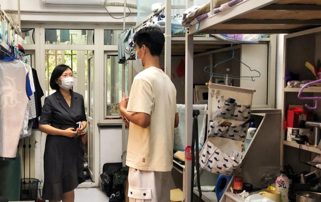 在慎思斋土木工程学院2020级土木工程专业学生宿舍,王罡就学生在校作息时间安排、线上教学情况、专业课程学习、科研方向选择、生活需求等情况与同学们逐一交流,嘱咐同学们学会相互包容,珍惜同窗情谊,营造良好的学习环境和生活文化氛围。在重能斋和洵美斋毕业班宿舍,王罡询问毕业生的就业状态和就业意愿,倾听了同学们在城大求学期间的难忘经历,了解了同学临近毕业的心情和对母校的建议。叮嘱毕业生要牢记母校嘱托,走好今后人生路,成为祖国栋梁之才。走访期间,王罡向同学们传达了学校领导和老师对同学们的关心和关爱,鼓励同学们增强户外体育锻炼,调节身心状态,利用好校内资源,继续保持积极昂扬的生活状态,遇到任何困难第一时间进行反馈,学校会积极帮助同学解决,为同学们的健康成长保驾护航。