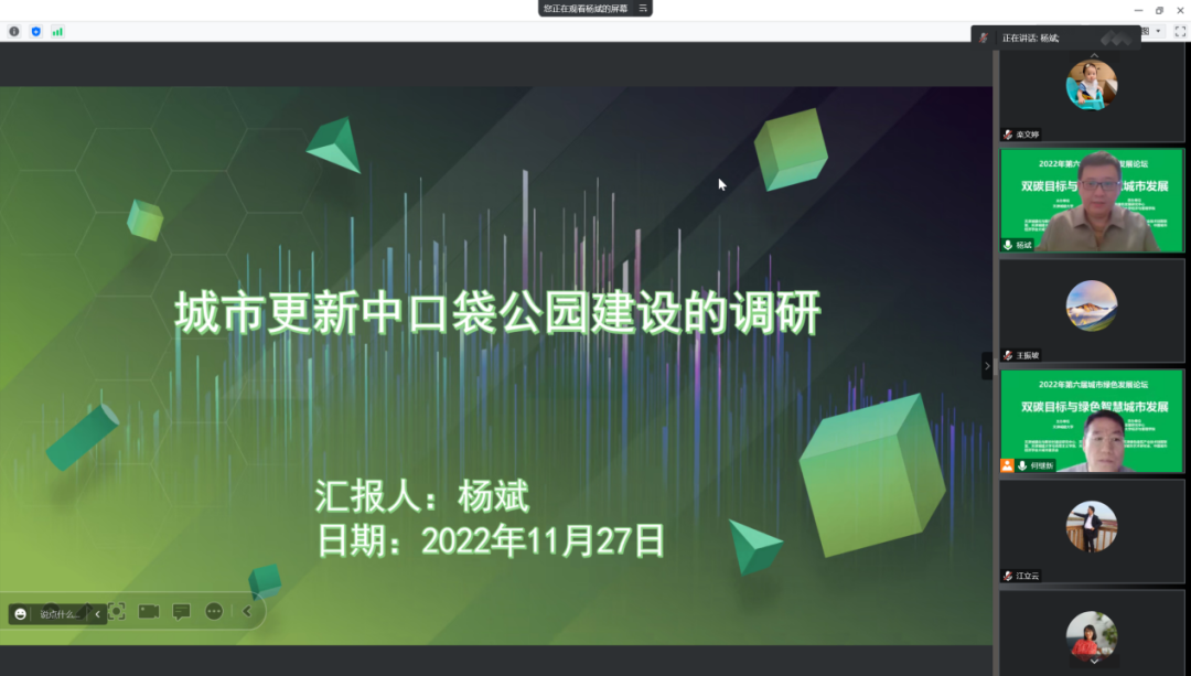 杨斌教授做《城市更新中口袋公园建设的调研》主旨报告