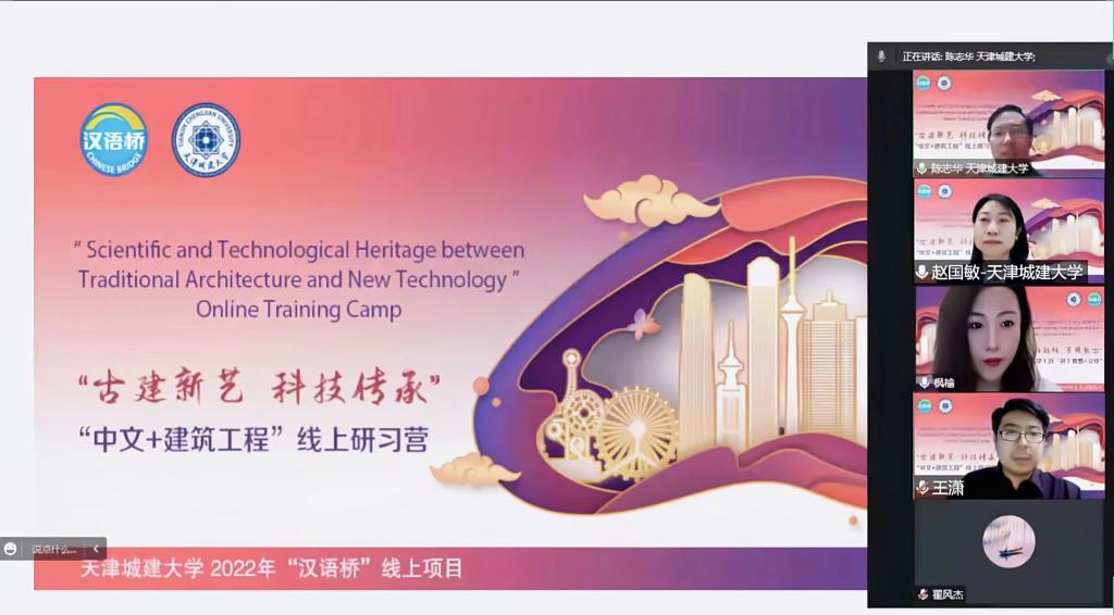 学校深入学习贯彻习近平主席复信沙特中文学习者代表讲话精神,依托校内优质教育资源,将汉语学习与专业技能培养紧密结合,着力打造“中文+建筑工程”“中文+工程管理”等特色中文课程,先后开设了《琴歌艺术-中国传统文化的优秀代表》《地下空间开发发展现状与安全建造关键技术》《中国工程建筑发展成就》《中国建筑艺术》等10余门具有浓厚城建特色的“中文+”课程。通过线上语言直播课、文化录播课等多种形式为学员们展示了一场场丰富多彩的文化盛宴,使学员们深刻感受独特的中国古现代建筑之美,领略中华文化魅力。