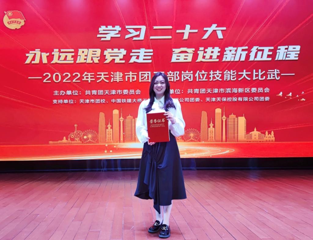 近日,“学习二十大、永远跟党走、奋进新征程”天津市团干部岗位技能大比武在空港文化中心落下帷幕。经过激烈的角逐,我校团干部范佳悦在2022年天津市团干部岗位技能大比武中脱颖而出,荣获三等奖佳绩。
