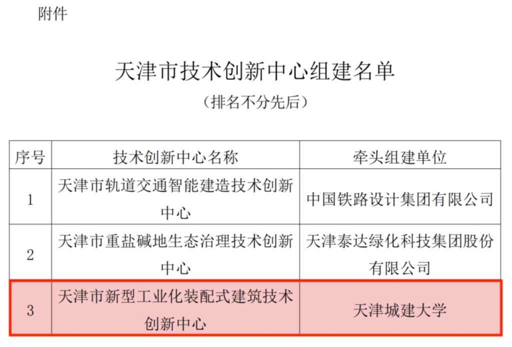 近日,由我校牵头,联合中铁建大桥工程局集团建筑装配科技有限公司、天津大学、中冶天工集团有限公司、天津海河设计集团有限公司、天津住宅建设发展集团有限公司、天津友发钢管集团股份有限公司共同申报的“天津市新型工业化装配式建筑技术创新中心”(以下简称“技创中心”)正式获得天津市科学技术局批准组建,这标志着我校在前沿技术创新、高端平台建设与有组织科研等方面取得新突破、再上新台阶。