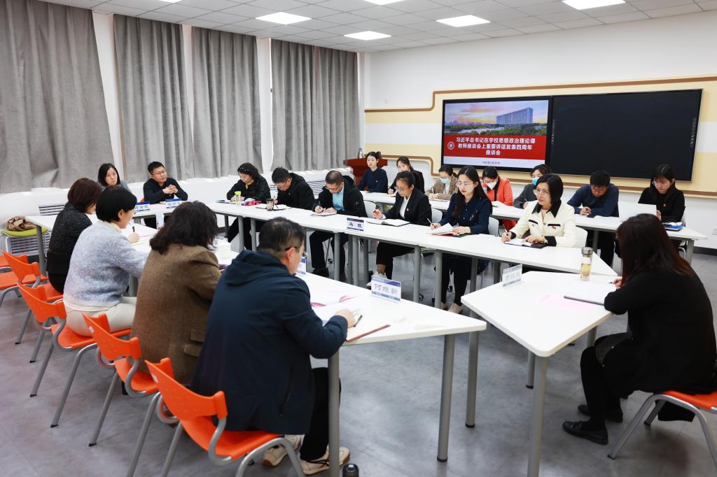 会上,马克思主义学院党总支书记高燕汇报了四年来深入学习贯彻落实习近平总书记重要讲话精神的主要做法和取得的成效,表示今后要以“三个坚持”推动马克思主义学院高质量。要坚持政治建院,把牢学院的政治属性,守好思政课主渠道,做好理论宣讲的排头兵。要坚持党建统领学院发展,继续推进党建与业务紧密融合的工作模式,用好用活学校红色资源和传统文化资源,培育特色思政课。要坚持聚焦思政课师资攻坚,发挥思政课教师在课程建设、学科建设、学院建设中的主体地位,将思政课教师队伍打造成马克思主义理论的坚定信仰者、有力传播者、深入研究者和忠诚践行者。