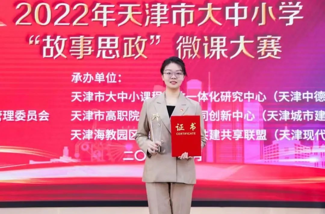 近日,市教委公布了《2022年天津市大中小学“故事思政”微课大赛获奖名单》,我校6位参赛教师共获一等奖1项,二等奖1项,优秀奖4项。