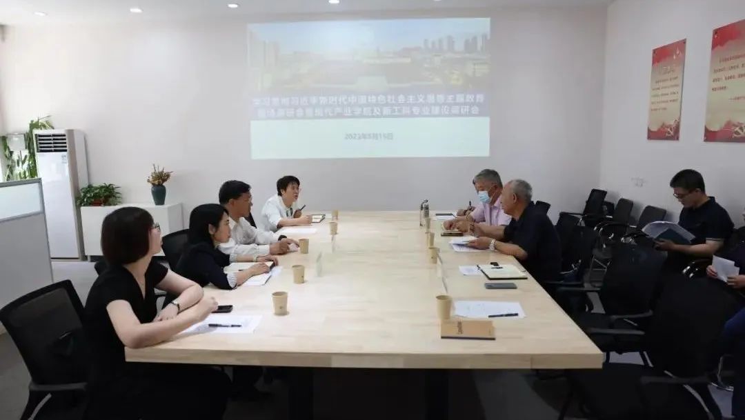 调研组随后来到学校工程实训中心,在消化吸收海河设计集团现场调研经验的基础上,针对现代产业学院及新工科专业建设面临的问题进行座谈交流。参会代表就新工科专业的2023版本科人才培养方案的修订内容、开展项目式教学、企业参与人才培养过程等细节问题开展深入研究与讨论。