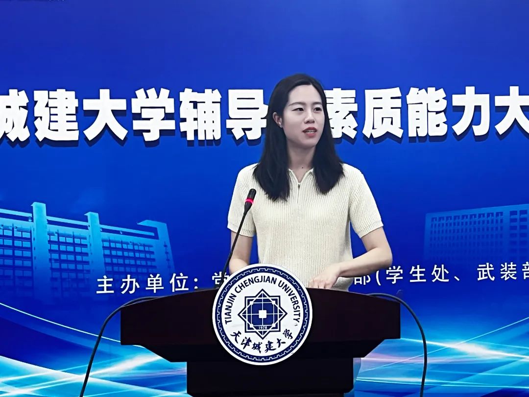 两场实景模拟结束后,天津市十佳辅导员、天津市第四届辅导员素质能力大赛二等奖获得者、建筑学院党委副书记王菲结合自身参赛经历,给辅导员们带来了全面细致的备赛建议和指导。王菲讲解了大赛的基本赛制、分享了常见学生案例,建议大家注重日常工作积累,形成自己的思路和风格,为在场的老师们带来了满满的“干货”。