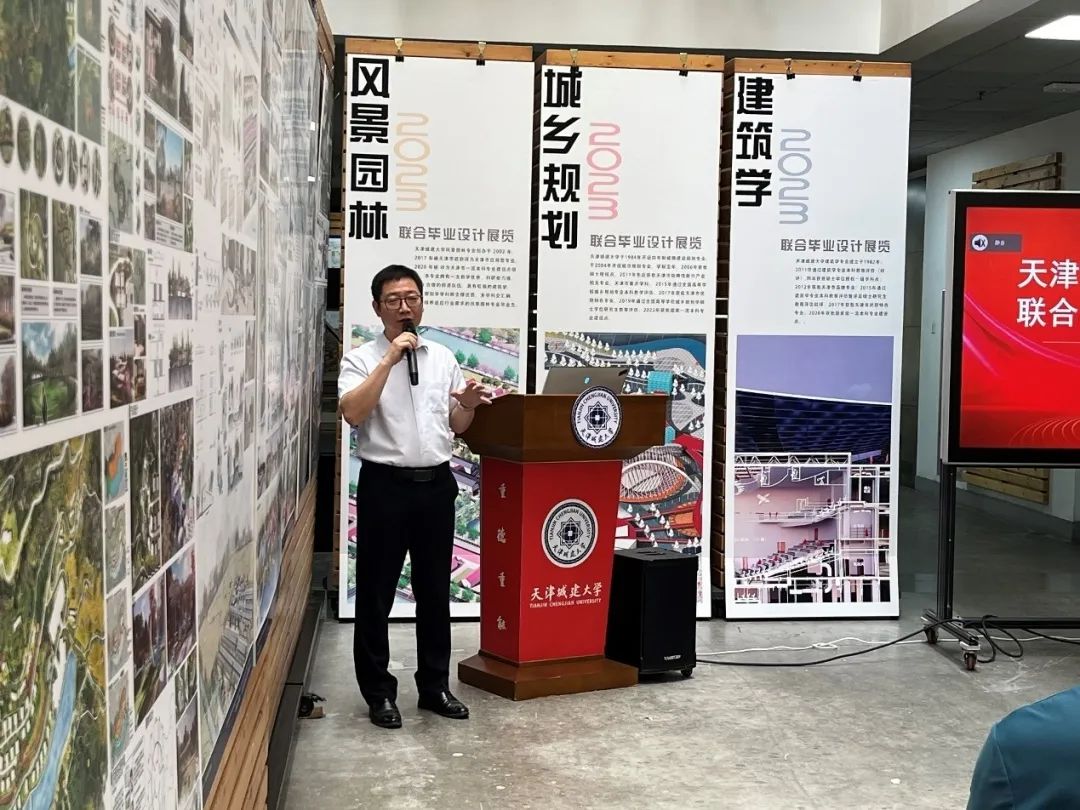 教务处处长赵国敏表示联合毕业设计不仅是重要的教学环节,更是同学们难得的学习经历,体现了建筑学院在教学改革方面做出的努力,是落实学校对学科群、优势特色专业和创新团队等方面建设要求的具体举措。