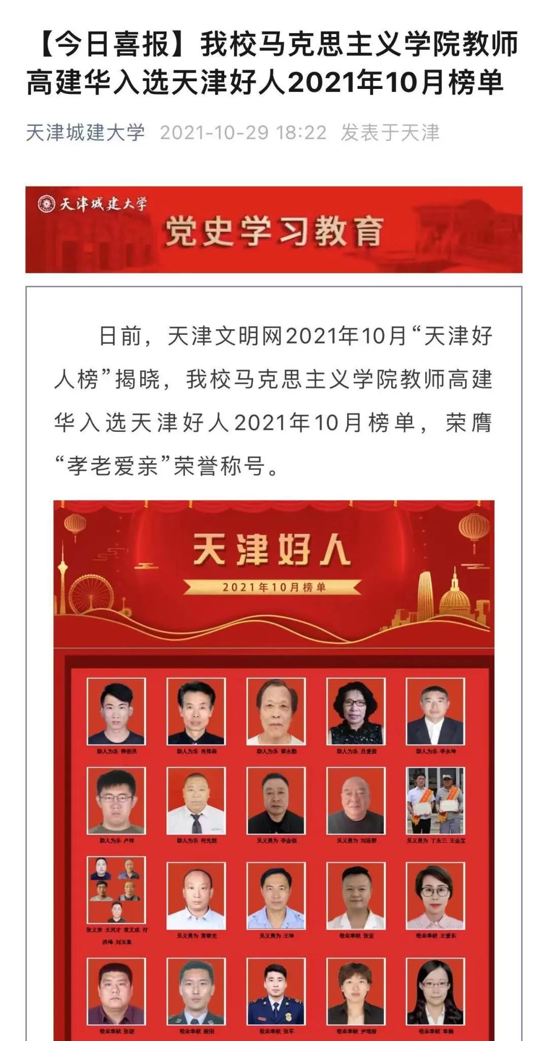 近年来,学校教师思想政治和师德师风建设工作不断创新举措,教师思想政治素质和职业道德水平显著提升,各个岗位、各条战线涌现出来一批先进典型,刘中宪教授入选国家级人才计划项目并获得天津青年五四奖章,刘志锋教授入选全球前2%顶尖科学家,王海良教授荣获天津市最美科技工作者,郭伟、李美东等多名教师分别荣获天津市师德先进个人、优秀教师、优秀党员、优秀党务工作者,三八红旗手、十佳辅导员等荣誉,展现了威客电竞教师的能力水平和精神风貌。特别是马克思主义学院教师高建华登上天津好人榜单,荣膺“孝老爱亲”荣誉称号,用敬老助残行动传承雷锋精神,在社会上获得广泛赞誉。全体教师干事创业热情高涨,积极发挥专业特长,推动学校在在思想政治、人才培养、学科建设、科研创新等方面均取得可喜成绩:思想政治工作对标增效——学校连续三年获评天津市大学生思想政治教育工作优秀单位;马克思主义学院以“优秀”的成绩顺利通过天津市高校重点马克思主义学院结项验收。本科教育、研究生培养质量不断提升——毕业生去向落实率始终位居天津市普通市属高校前列;入选教育部供需对接就业育人项目9项;获批国家级一流专业建设点10个、国家级一流课程5门、国家级课程思政示范课程1门。学科科研创新发展——学科评估取得历史性突破,上升了一个等级。