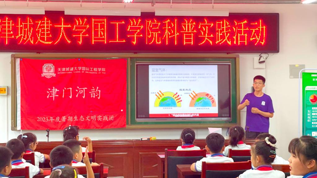 实践队分别赴宝坻区南王中心小学、卜庄小学和香铺王小学,开展生态文明科普、法治科普、抗震科普活动,为小学生们普及生态环保知识、法律知识和防震减灾知识,传播生态文明理念,提升同学们的自我保护意识,在他们心中种下一粒梦想的种子,点亮乡村少年的强国梦想。实践队成员精心设计制作了书签、明信片、模型和宣传册与小学生们进行分享,以青春之行促进乡村科普。