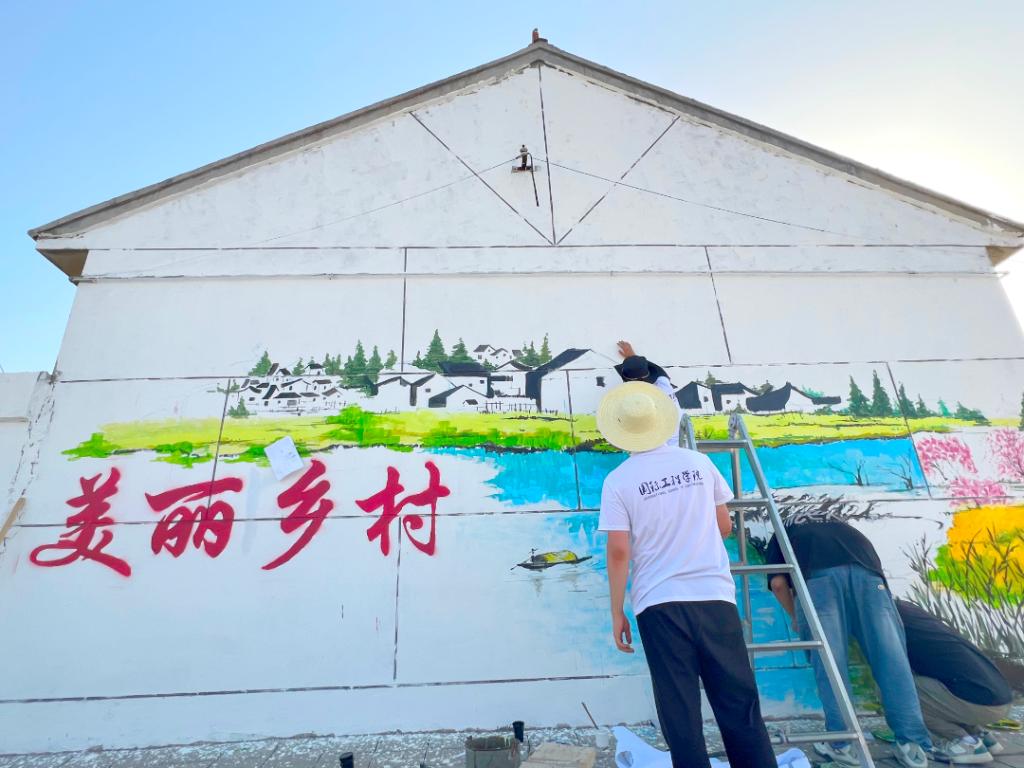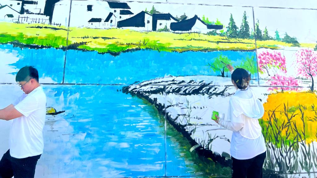 为提升乡风文明,助力乡村振兴,实践队成员前期对接霍各庄镇西霍各庄村,调研乡村需求,结合专业特长,实地勘察制定墙绘方案,按照图稿在墙体打底稿、涂色,用多彩墙绘扮靓美丽乡村。