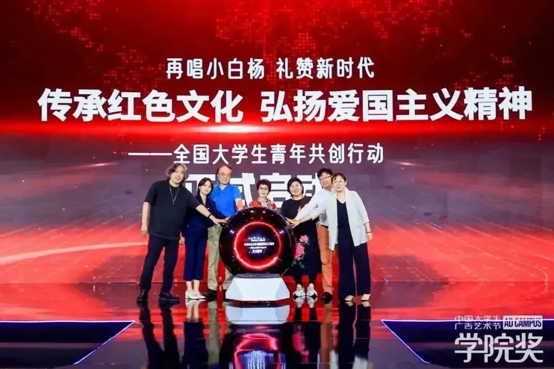 最后,由张景华与中国大学生广告艺术节学院奖组委会、创意星球董事长穆虹,以及部分高校老师代表以及媒体代表、青年代表共同按下光球,完成了《传承红色文化,弘扬爱国主义精神》全国大学生青年共创行动启动仪式。