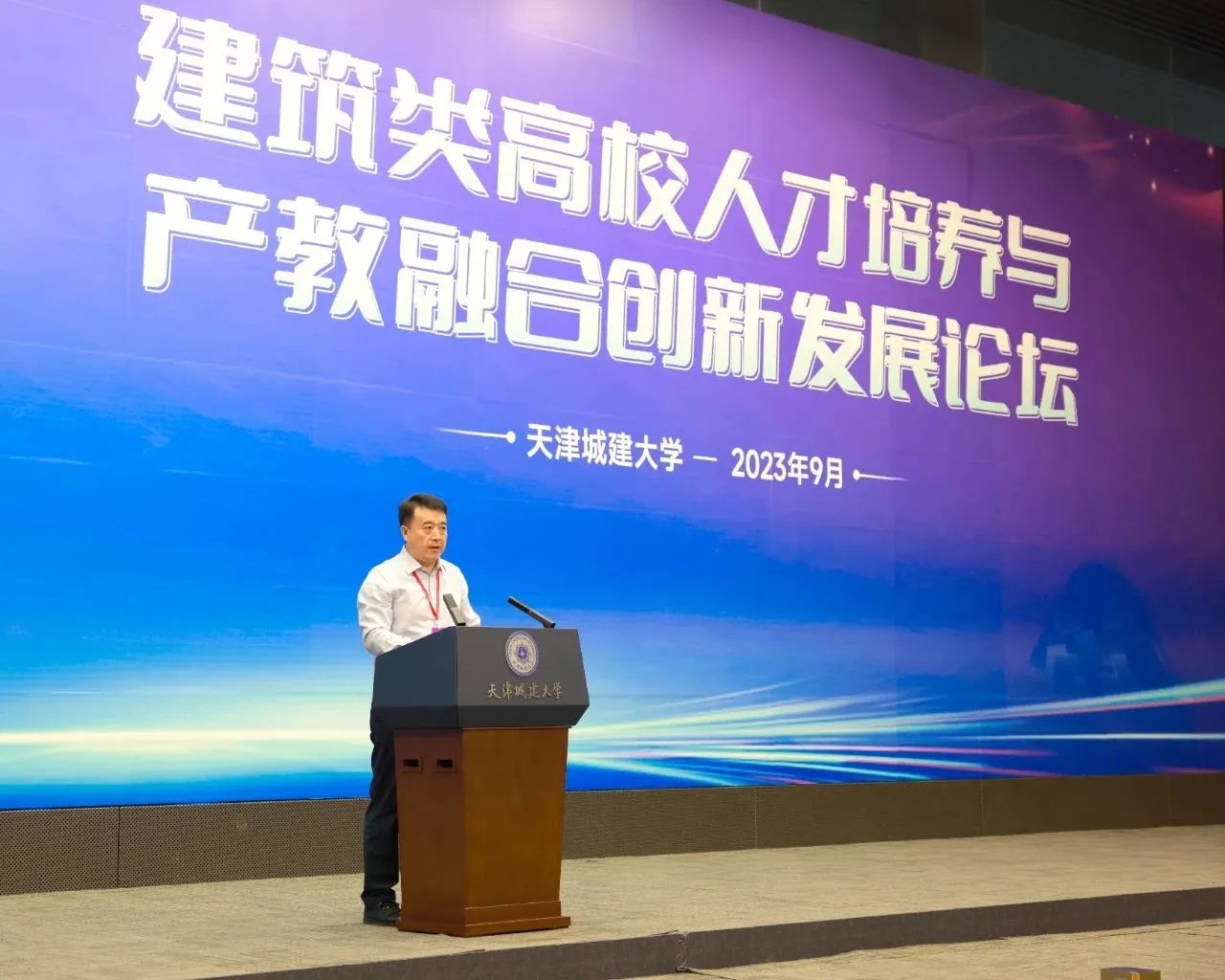 校党委副书记、校长白海力主持主旨报告,7位专家学者分享了他们对建筑类高校人才培养与产教融合创新发展的深刻认识和独到理解。