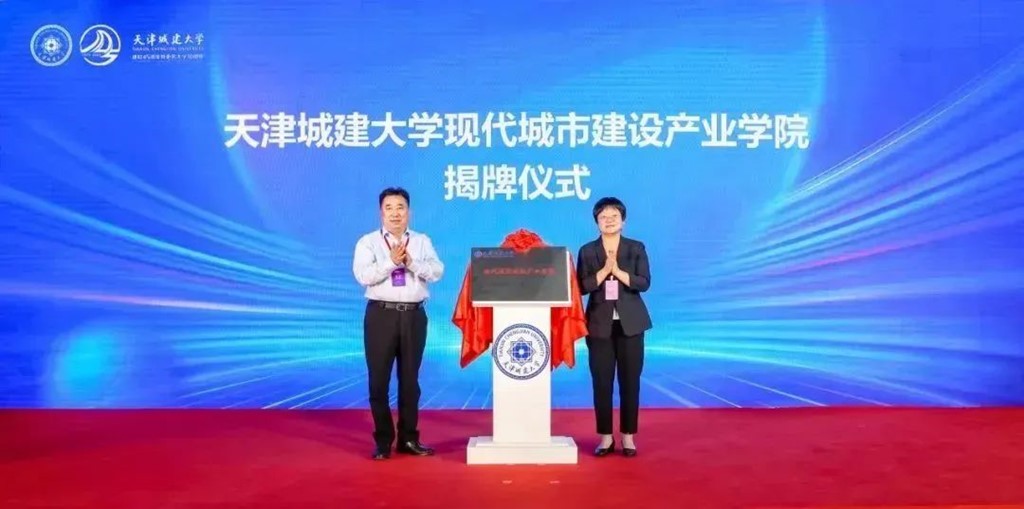 2023年9月天津住宅建设发展集团有限公司党委书记、董事长、总裁康庄,天津市教育委员会副主任仇小娟为威客电竞现代城市建设产业学院揭牌