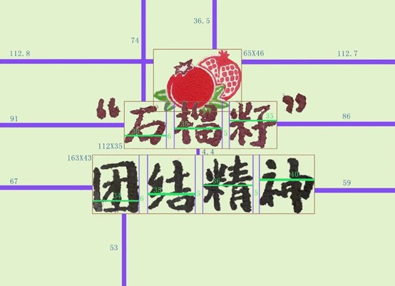 第三部分为石榴籽主题,颗颗饱满的石榴籽被石榴皮紧紧地裹挟在一起,形象的传达了习近平总书记的重要讲话精神,“各民族要像石榴籽一样紧紧抱在一起”。