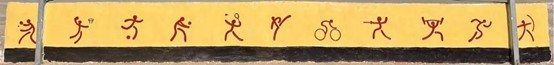 墙绘整体采用卡通形象,以高纯度、明快色为主色调,符合小学生的爱好。墙绘共分为四个部分: