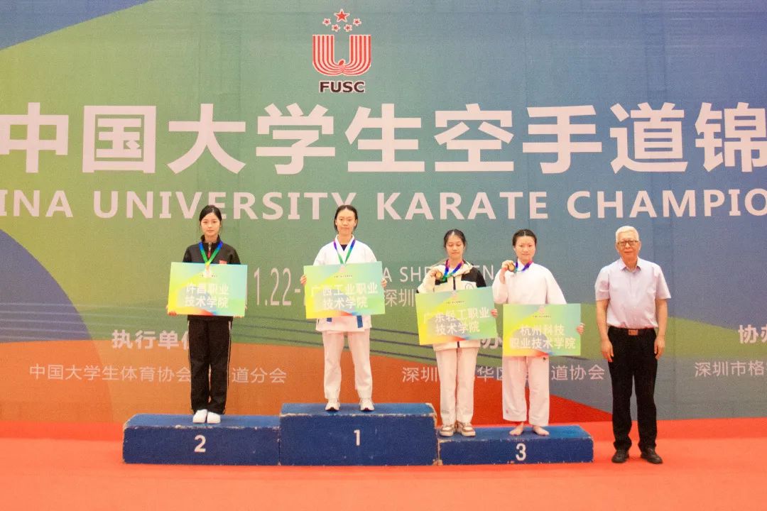 11月22-27日,第11届中国大学生空手道锦标赛在深圳举办。经过激烈角逐,我校由体育部主任王建华领队、教师李正作为教练员,6名学生组成的空手道参赛代表队斩获个人单项1金、1银、2铜,男子团体和女子团体双季军的好成绩。