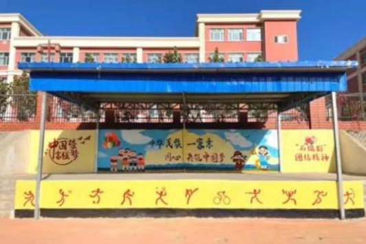 浓墨渲染韵律之美,颜料勾勒多彩校园。支教团小学组全体成员为于田县第二小学完成了校园墙绘工作。支教团紧紧围绕“中华民族一家亲,同心共筑中国梦”的主题,设计出符合学生身心发展的主题墙。经过一个月的全身心投入,一个崭新的舞台创作完成,为校园带来了浓浓的艺术气息。与此同时,支教团的孩子们还用画笔为垃圾桶和石墩“穿新衣”,通过实际行动让广大师生感受支教团带来的新变化新气象,本次工作充分体现了树德、增智、强体、育美的综合育人价值,为打造优美校园、促进校园精神生活和文化生活全面发展提供助力。