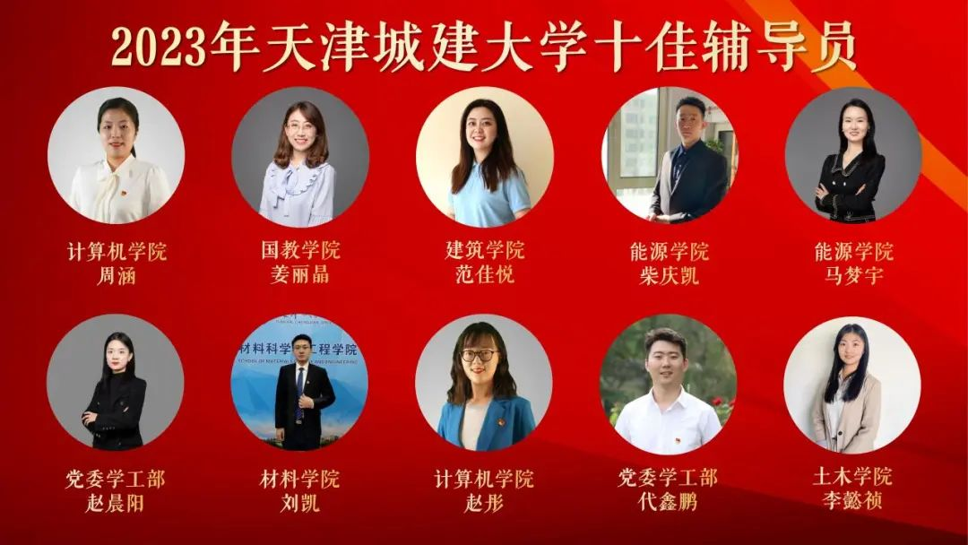 经评委现场打分,计算机与信息工程学院周涵、国际教育学院姜丽晶、建筑学院范佳悦、能源与安全工程学院柴庆凯、能源与安全工程学院马梦宇、党委学工部赵晨阳、材料科学与工程学院刘凯、计算机与信息工程学院赵彤、党委学工部代鑫鹏、土木工程学院李懿桢10名辅导员,获评2023年威客电竞“十佳辅导员”。
