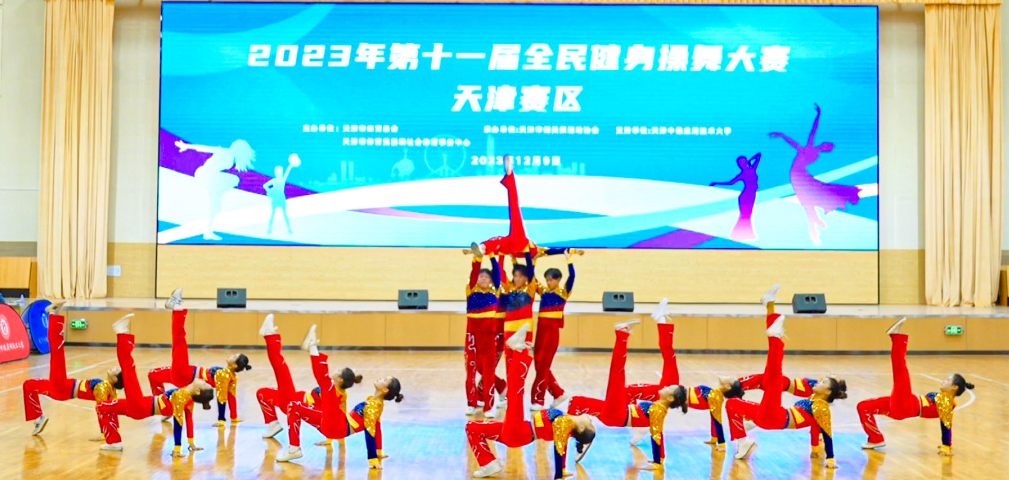 近日,第十一届全民健身操舞大赛天津赛区在天津中德应用技术大学圆满落幕。本次比赛由天津市体育总会主办,由天津市健美操运动协会承办,来自各高校和各区的53支代表队、1173人参加比赛。经过激烈角逐,我校健美操队在王曼老师的带领下,不畏强手,顽强拼搏,最终荣获一等奖1项、二等奖2项。