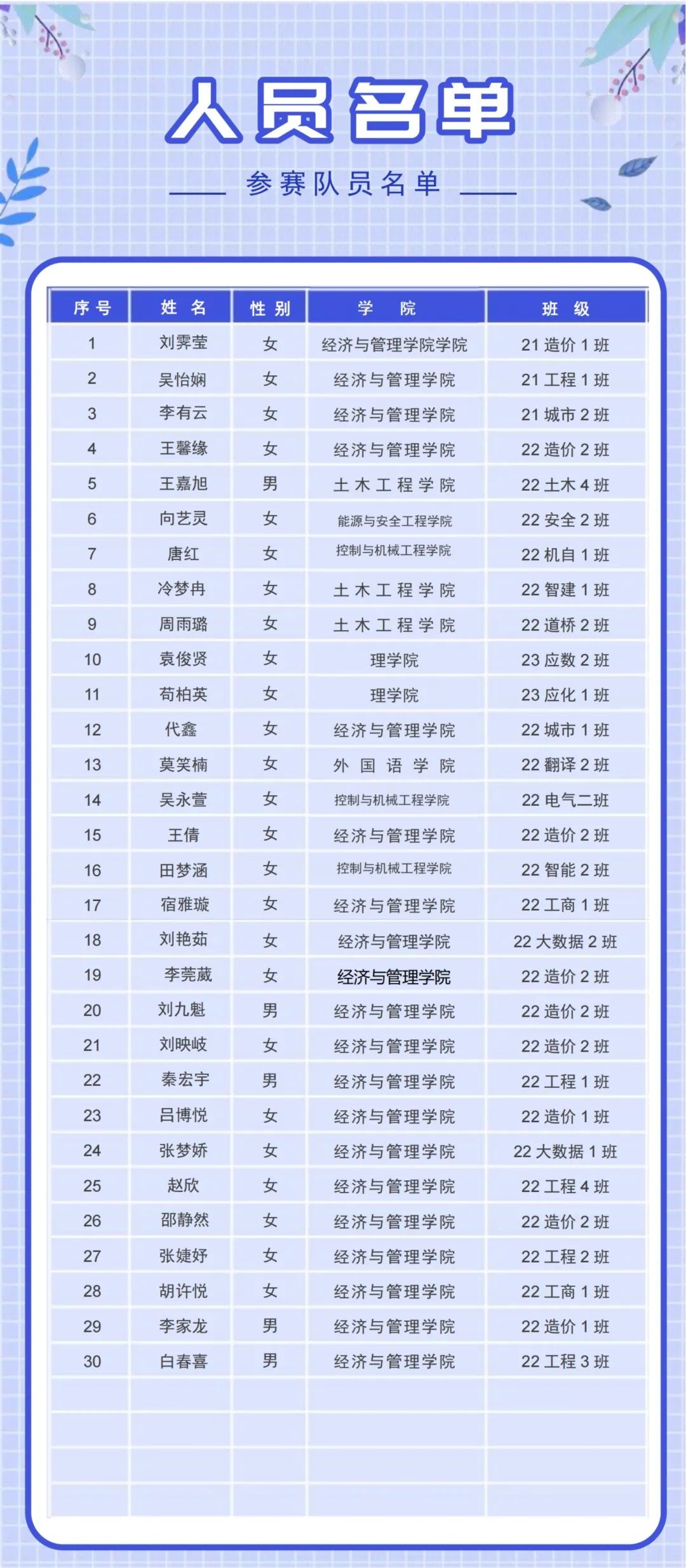参赛人员名单