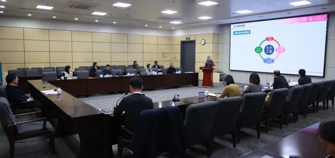 土木学院副院长吕杨从学科方向特色、师资队伍、人才培养、科学研究、培养环境与条件等方面,对我校博士立项建设授权点——土木工程一级学科的建设情况进行了详细汇报。