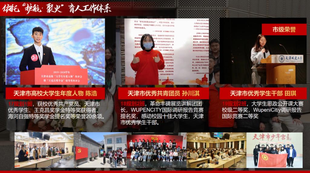 三年来,从荣获天津市实践行优秀指导教师,到天津市优秀共青团干部,从参与教改课题、荣获市级优秀案例,到参与获批天津市首批辅导员工作室,范佳悦共荣获天津市级荣誉8项、校级荣誉30余项。