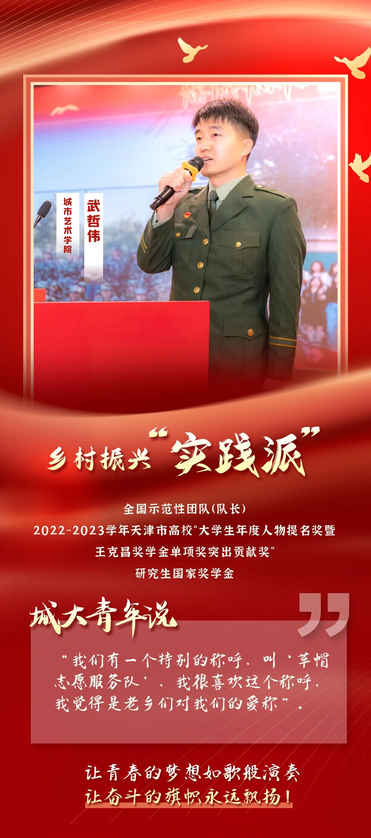 作为一名中共党员,也是一名退役军人,武哲伟一直身体力行助力乡村振兴战略实施。作为一名艺术学院的研究生,他结合自身所长,组建了艺术设计助力乡村振兴工作室,同时组织艺术学子在各自家乡组建以艺术为特色的学子归巢工作站。他自己也带领团队开展实践活动,先后走进阳泉、大连、太原等地20余个乡村,开展景观墙设计、农产品包装设计、文创设计、废弃民房改造设计等实践活动。