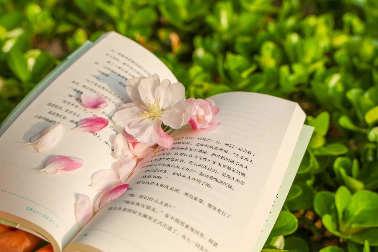 书页的轻响与花瓣的轻摇相互呼应