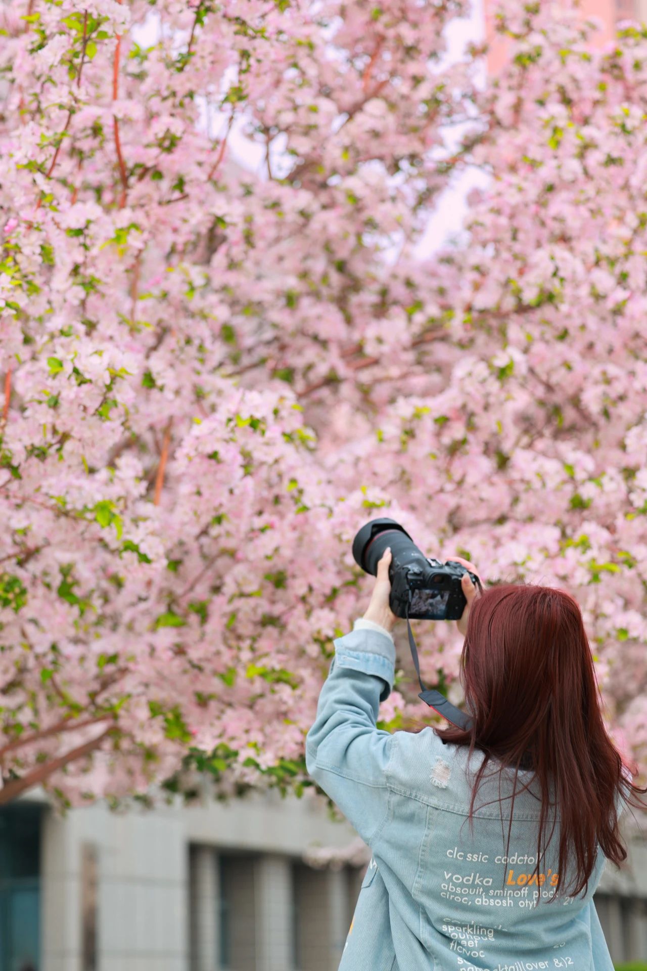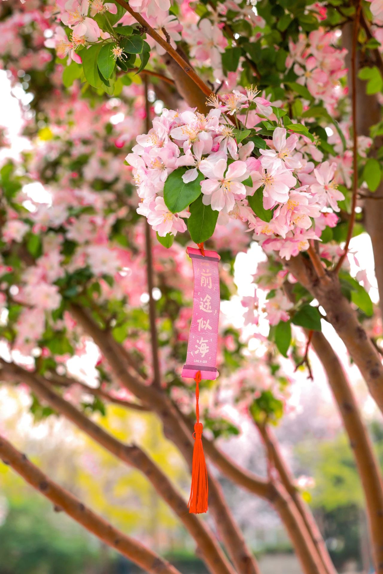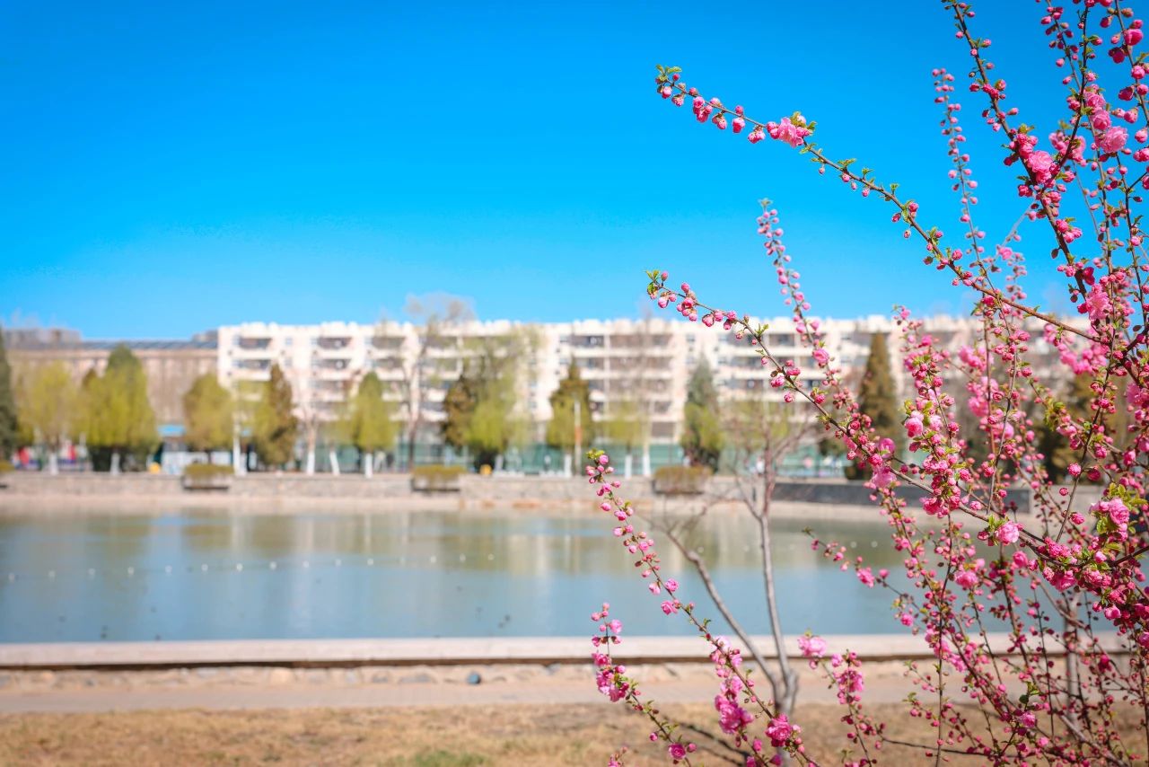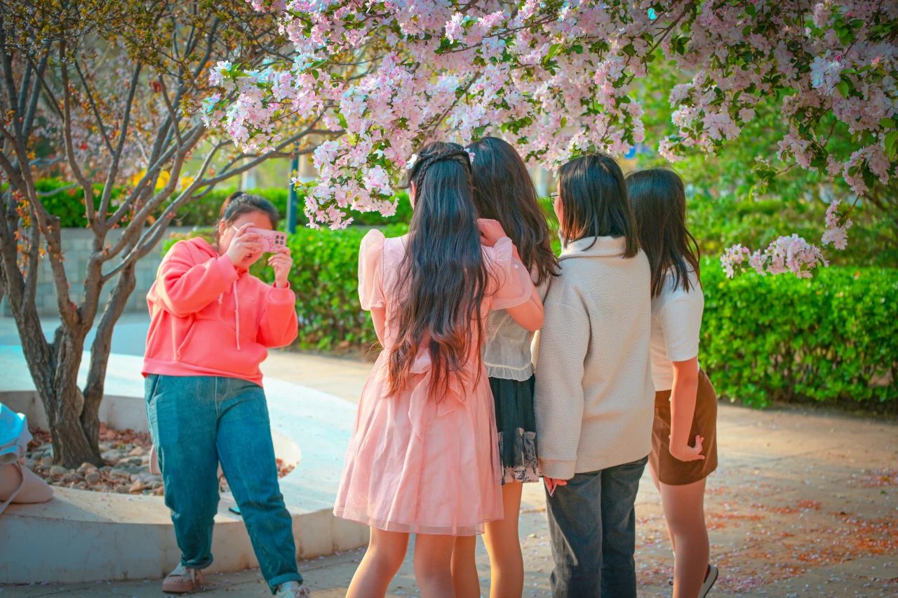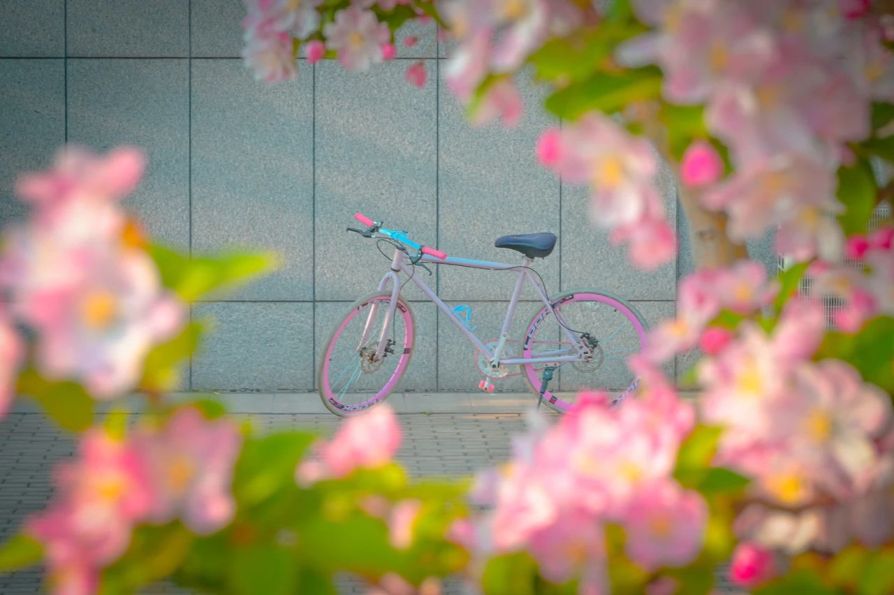 一朵朵粉色花朵仿佛是校园的精灵