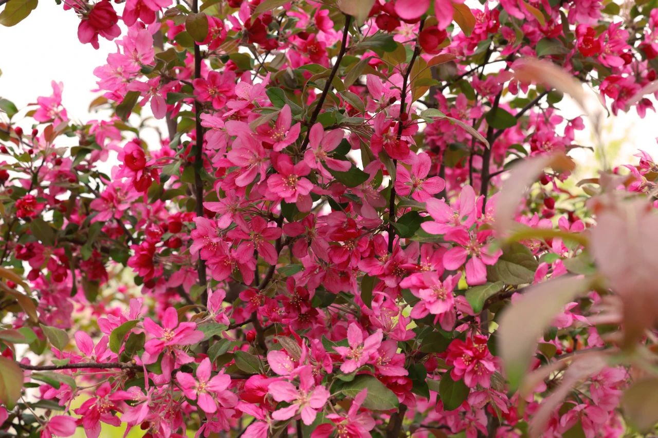 海棠花悄然盛开,丰满而色泽鲜艳