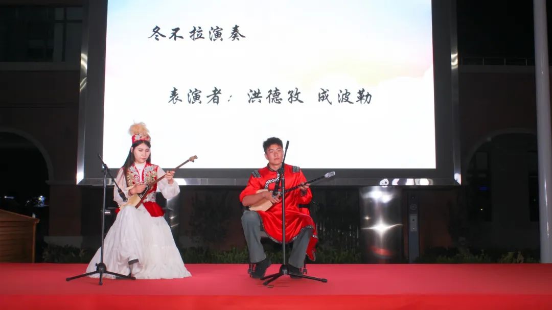 活动伊始,新望道小学古筝社团以一曲经典的《沧海一声笑》为整场演出拉开了序幕,充分展示了小学生们的活力与朝气。我校石榴籽少数民族工作室学生骨干们带来了吉他弹唱《斑马斑马》、冬不拉弹奏等精彩节目,他们用音乐诉说着青春的故事,用艺术表达着对未来的憧憬。小学生们被这些新颖的表演形式深深吸引,纷纷与我校表演同学亲密互动,现场气氛热烈而温馨。朗诵《借青春之火燃民族之魂》,通过铿锵有力的声音,表达了自己为实现中华民族伟大复兴的中国梦而努力奋斗的决心。丰富多彩的表演形式,不仅展示了孩子们的才艺和创造力,也促进了两校师生之间的交流与融合。