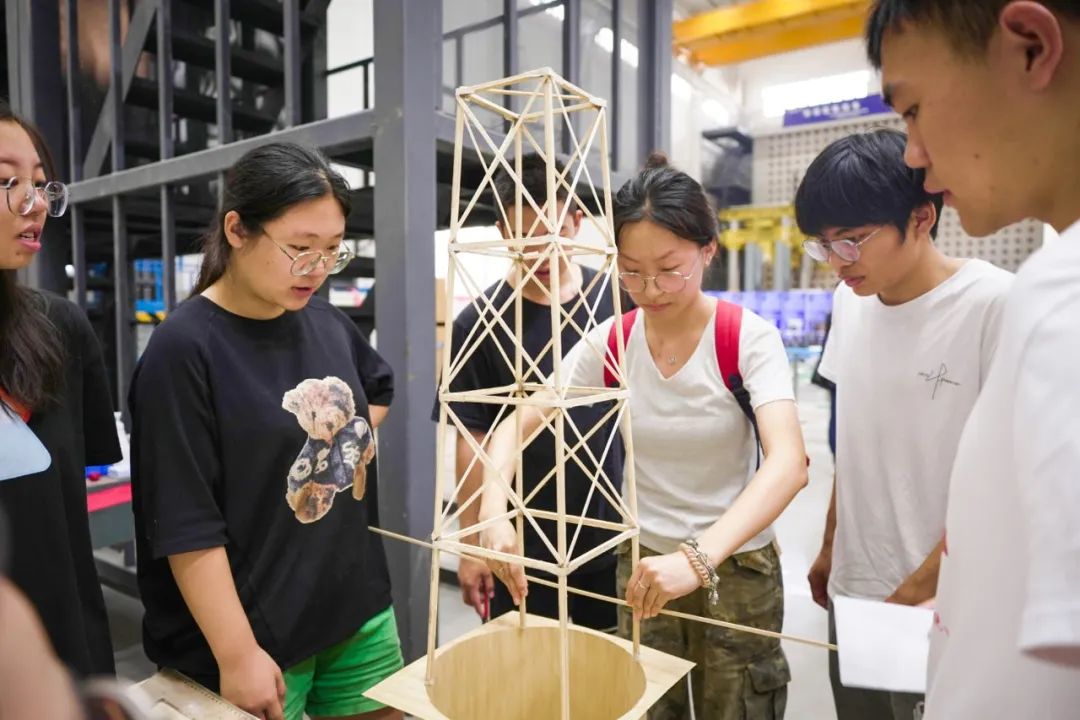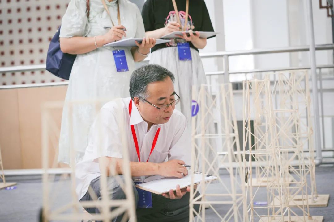 本次竞赛题目为《考虑水平振动的高耸塔式结构设计与模型制作》,以高耸塔式结构为基本单元,要求参赛者以竹材为主要材料,针对水平荷载、竖向荷载及水平振动复杂工况对其进行受力分析、结构设计、模型制作及加载试验,打造高荷载轻的模型。选题贴合实际问题,重在考察学生的专业创新思维和工程实践能力,更考验团队运用专业知识解决工程实际问题的能力。