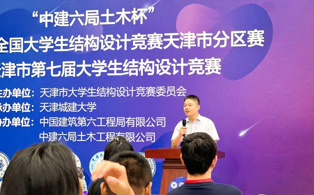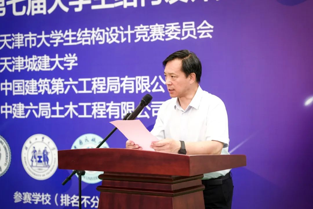 7月9日,“中建六局土木杯”第十七届全国大学生结构设计竞赛天津市分区赛暨第七届天津市大学生结构设计竞赛在我校成功举办。天津市大学生结构设计竞赛委员会宗亮,中建六局土木工程有限公司党委副书记、工会主席屈兆云,我校党委常委、副校长陈志华出席,学校教务处、团委、工程实训中心和土木工程学院主要有关领导参加开幕式。开幕式由土木工程学院党委副书记陈静媛主持。