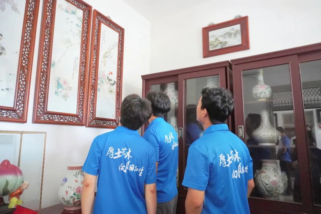 在古陶瓷研究中心,天津市非物质文化遗产第四代传人王晴向实践团队成员讲述了陶瓷的历史背景、制作工艺以及将粉彩瓷绘画、津门葫芦彩烙画与杨柳青年画相结合的特色做法。同学们在参观互动中被非遗传承人沉着专注的工匠精神所感染,更加深刻体会到中华优秀传统文化源远流长和创新发展的强大生命力,领略乡村之美,感受文化之韵。