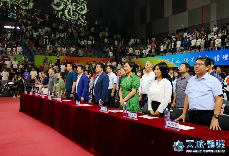 各学院党委书记化身领唱使者,倾情演绎歌曲《祝福祖国》,深情歌声中满载对祖国的热爱与祝福,为新生开启求学之旅注入温暖力量。一代又一代天城大师生爱党爱国、爱校荣校,勇担时代使命、争做时代先锋,天城大以宽广胸怀拥抱每一位追梦者,共赴星辰大海之约,为国家富强、民族复兴而努力奋斗的青春斗志。