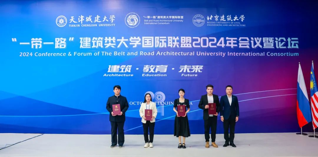 会议第二阶段由我校党委常委、副校长杨静主持。与会嘉宾为2024年“一带一路”国际大学生数字建筑设计竞赛获奖师生及单位颁奖。由联盟发起举办的 “一带一路”国际大学生数字建筑设计竞赛,至今已成功举办五届。2024年“一带一路”国际大学生数字建筑设计竞赛以“一带一路”历史建筑保护更新与活化利用为主题,吸引了来自11个国家和地区的79所高校参加,参与师生达1700余人次,我校第四年获得优秀组织奖,建筑学院推荐的参赛作品《城市融合,城市会客厅设计》《重塑新生——基于全龄友好视角下的城市更新设计》获得优秀作品奖;李小娟、陈立镜、王克宁3名教师荣获优秀指导教师称号。