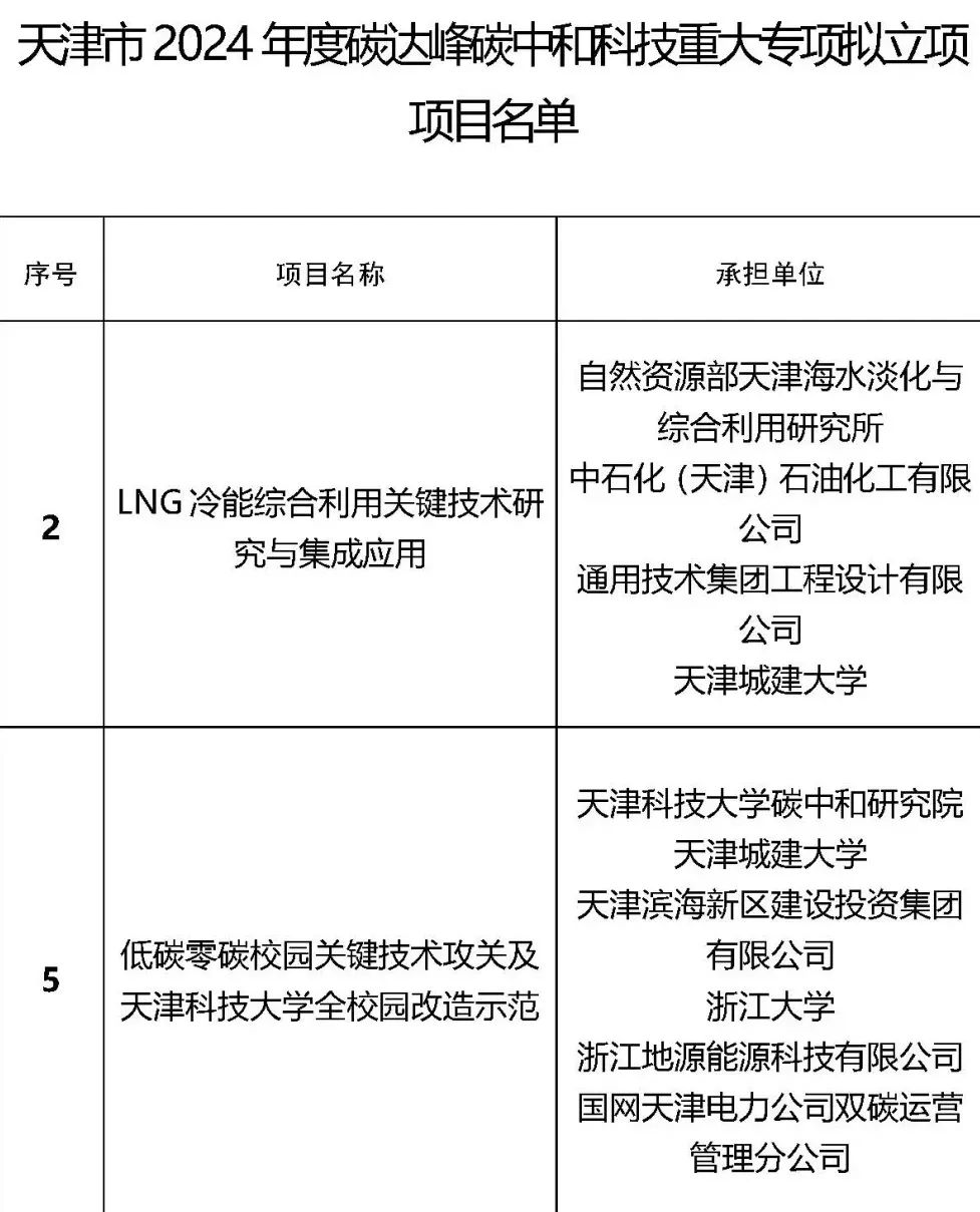 近日,天津市科学技术局公示了2024年度碳达峰碳中和科技重大专项的立项名单,共立项五项。我校参与两项,均获批。