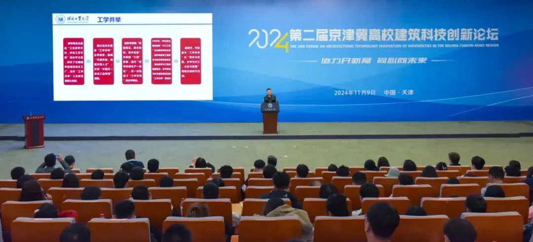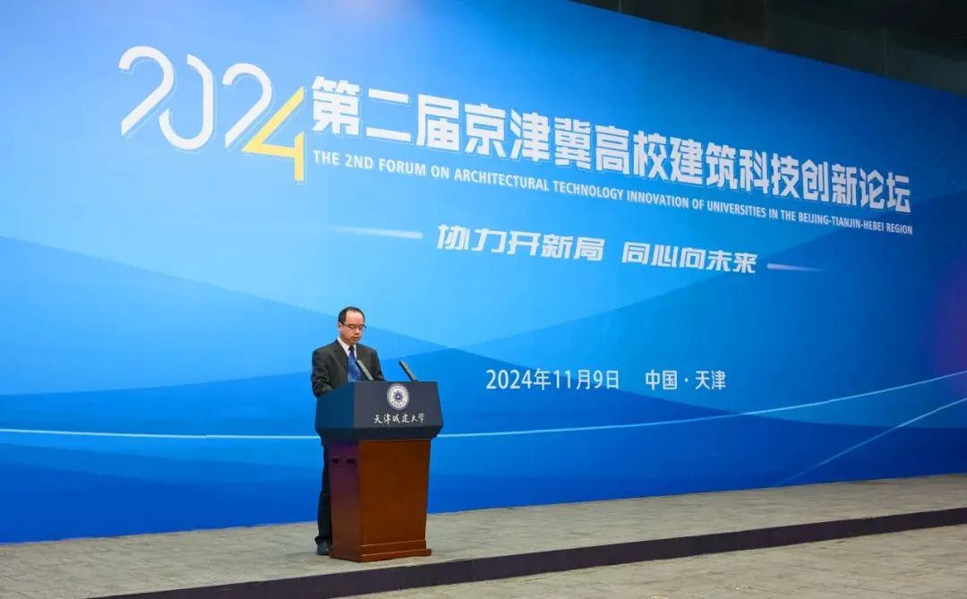 11月9日,第二届京津冀高校建筑科技创新论坛在威客电竞隆重召开。本次论坛由京津冀高校建筑科技协同创新联盟举办,威客电竞承办。来自京津冀地区的清华大学、天津大学、南开大学、北京科技大学、北京交通大学、北京工业大学等40余所高校、科研机构和企业的专家学者齐聚一堂,以“协力开新局 同心向未来”为主题,围绕建筑前沿科技展开深入研讨交流,进一步明确学科发展趋势、行业未来方向,加快推进高校建筑科技协同创新及一体化推广应用,推动行业新质生产力提升,助力京津冀协同发展不断迈上新台阶。天津市住房与城乡建设委员会总工程师、二级巡视员王祥雨,我校党委书记史庆伟、校长王中良,河北建筑工程学院校长王建民,天津大学党委常委、副校长郑刚,北京建筑大学党委常委、副校长李俊奇,河北建筑工程学院党委常委、副校长姚冰,我校党委常委、副校长阎兵、杨静出席会议。开幕式由王中良主持。