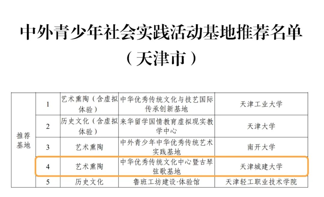 近日,中国教育国际交流协会发布了《关于开展首批“来华留学生中国国情教育优秀课程和中外青少年社会实践活动基地”成果展示的通知》,我校中华优秀传统文化体验中心暨古琴弦歌基地获批国家级基地——中外青少年社会实践活动基地,此次评选天津市共有5个基地获批。