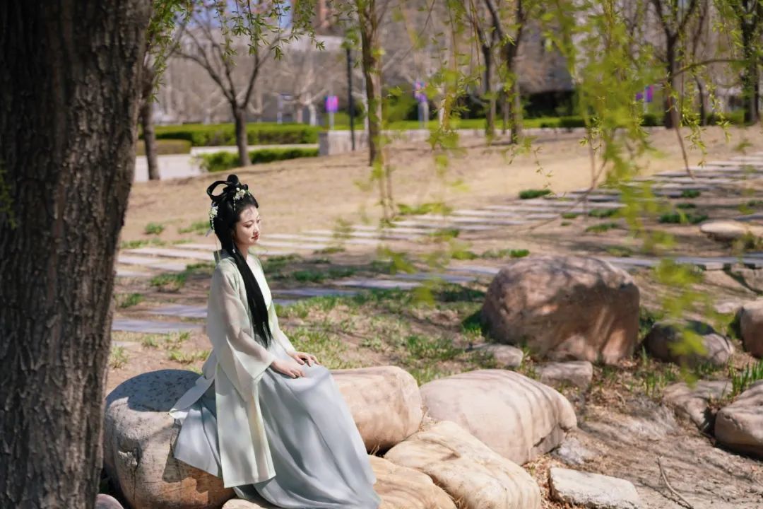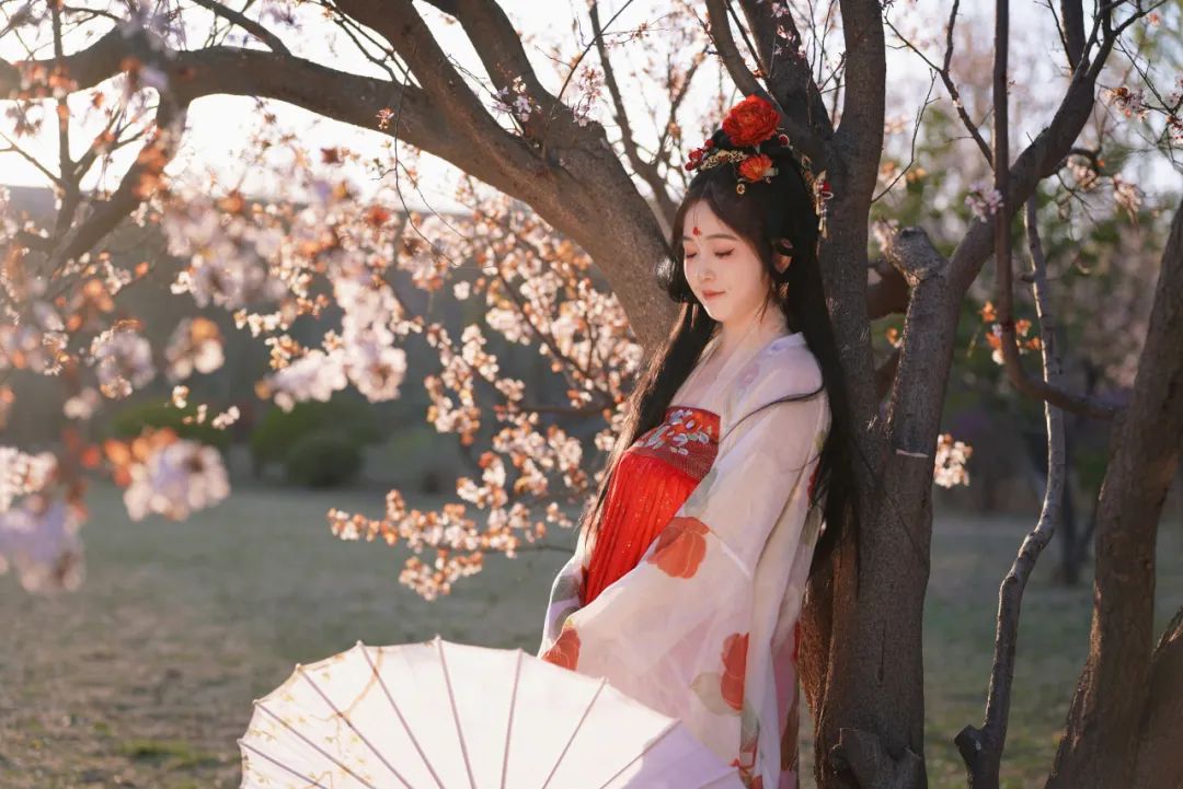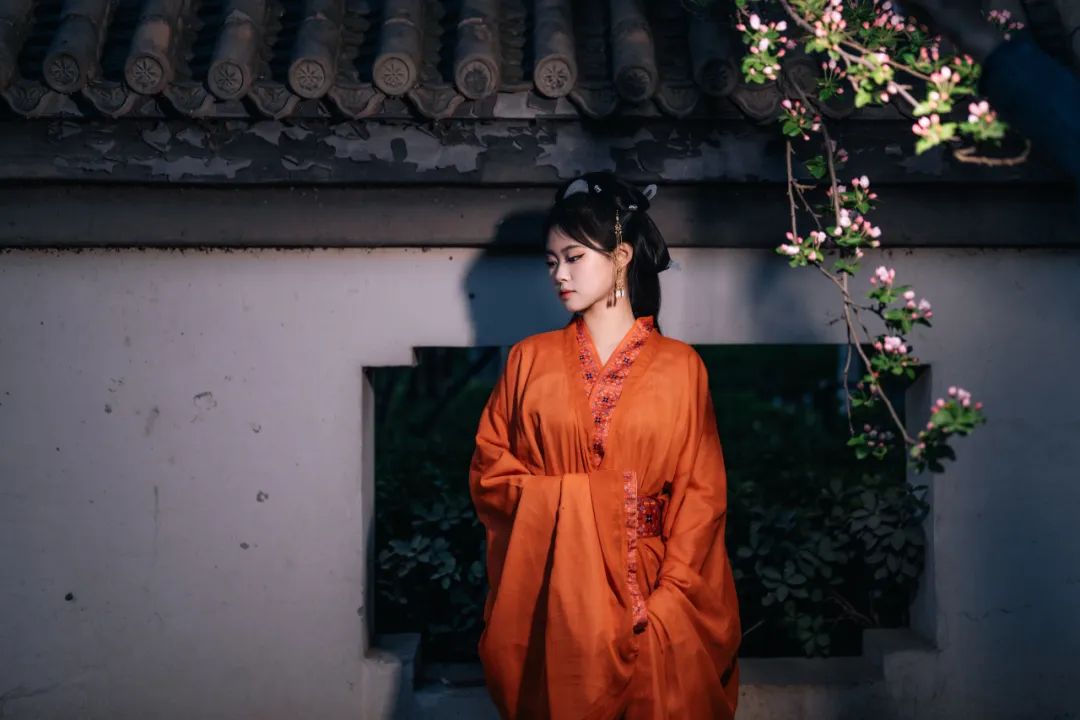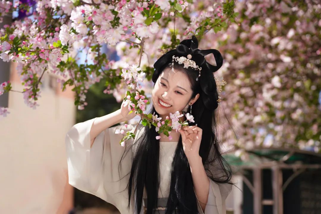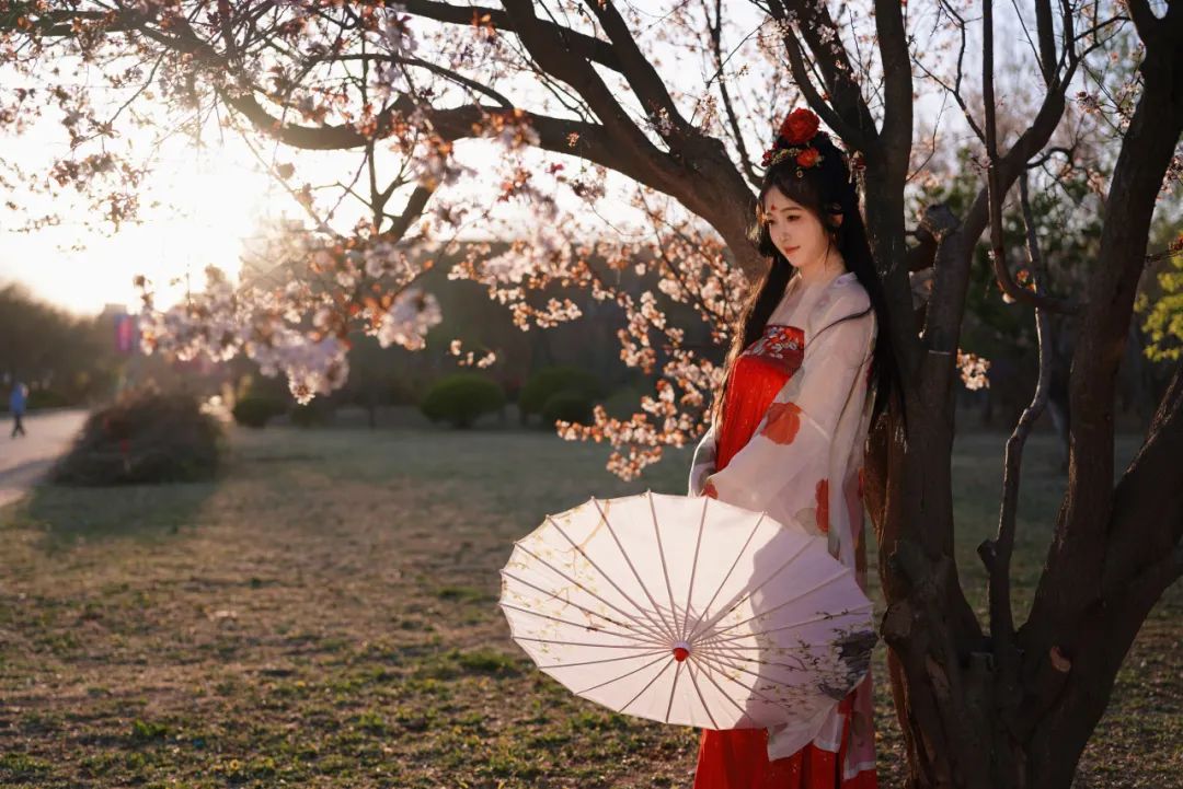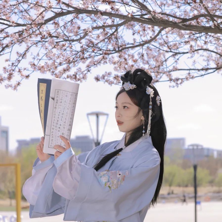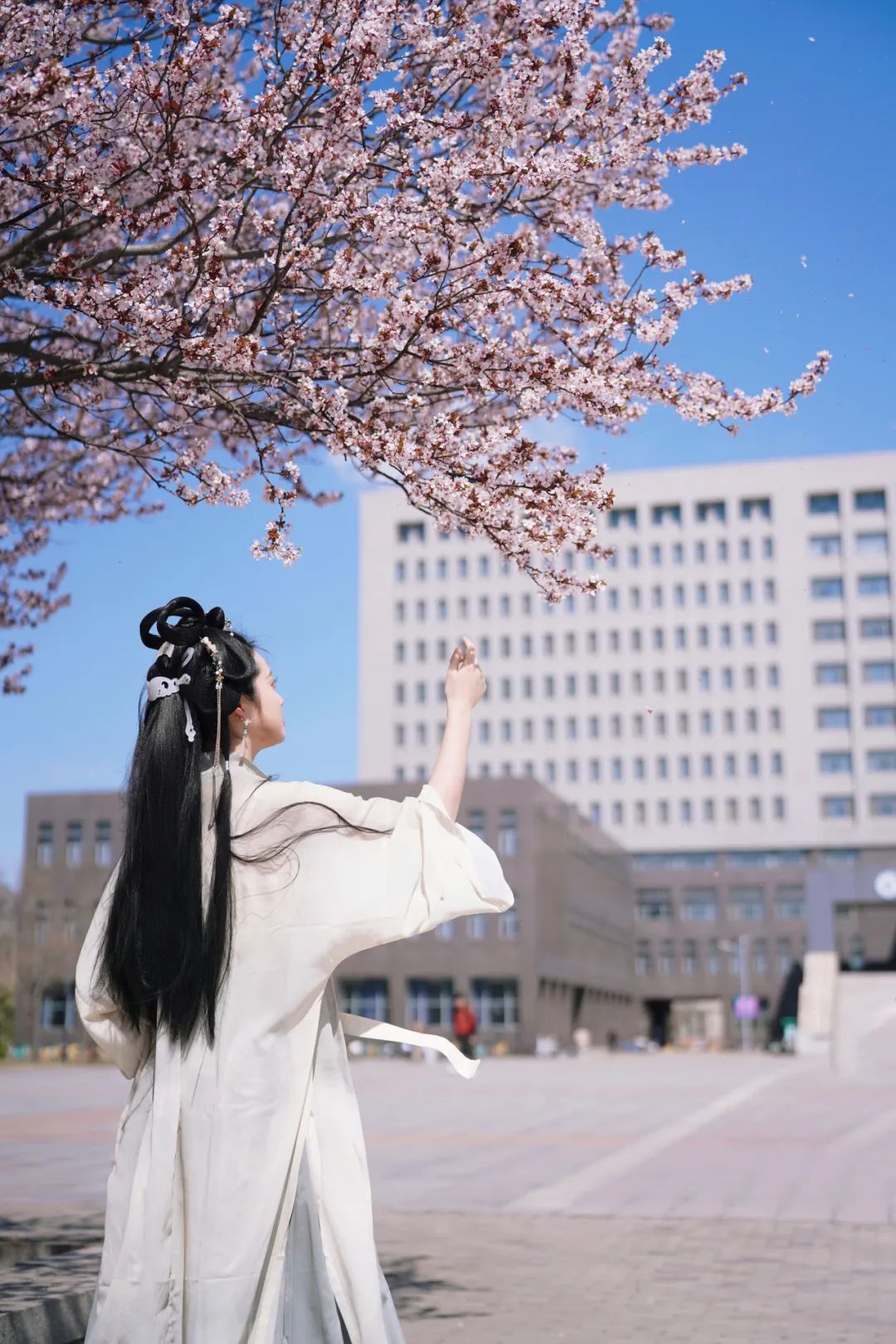 当汉服广袖拂过樱花纷扬的走廊
