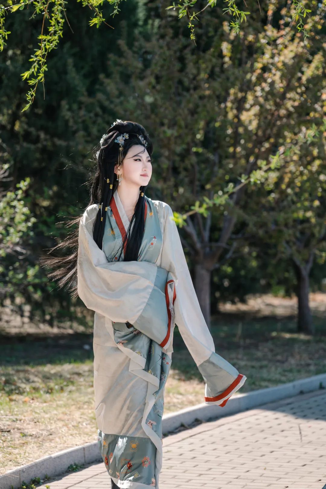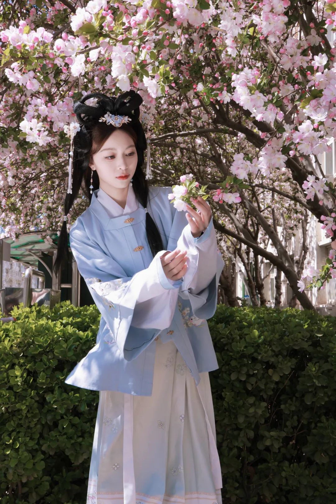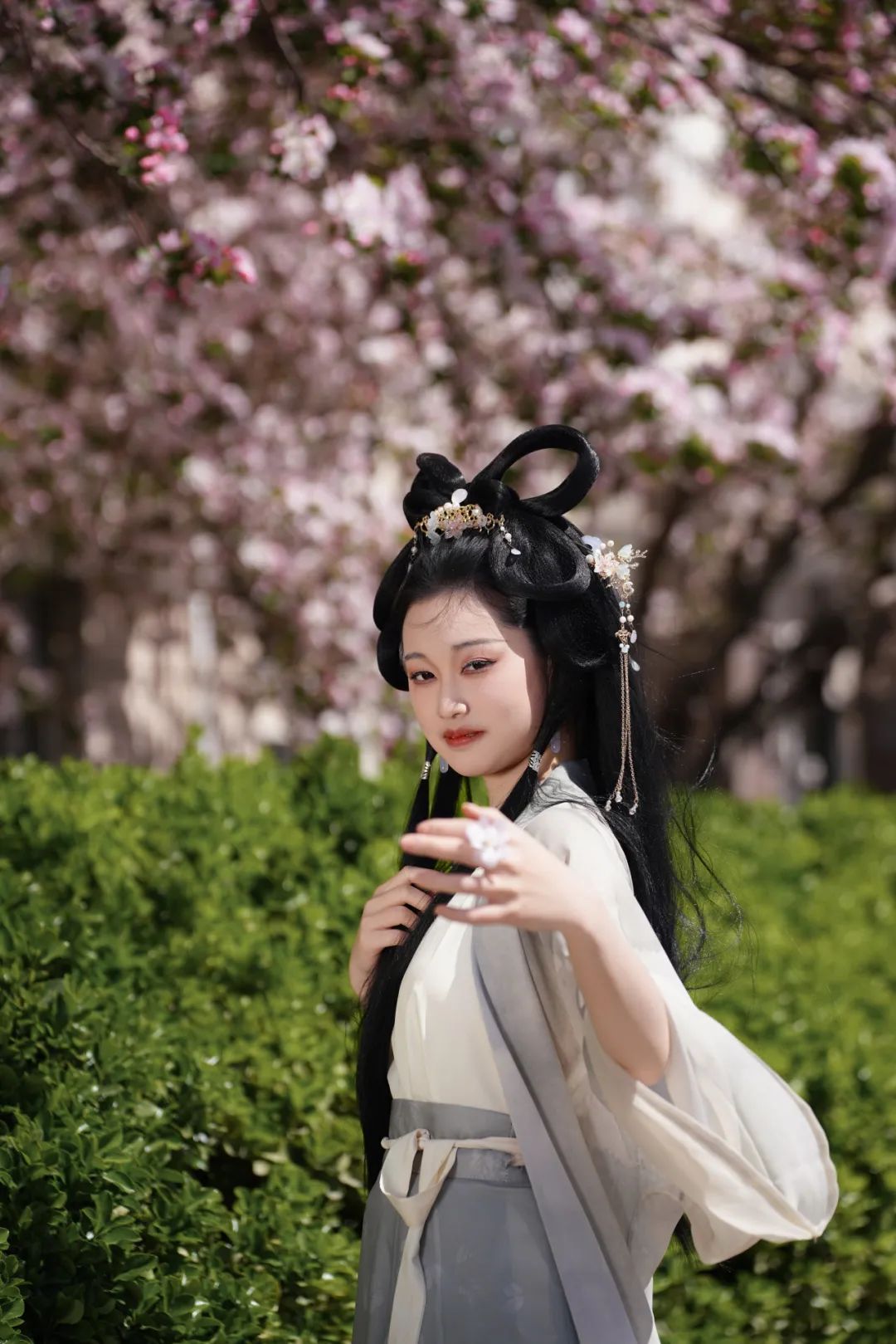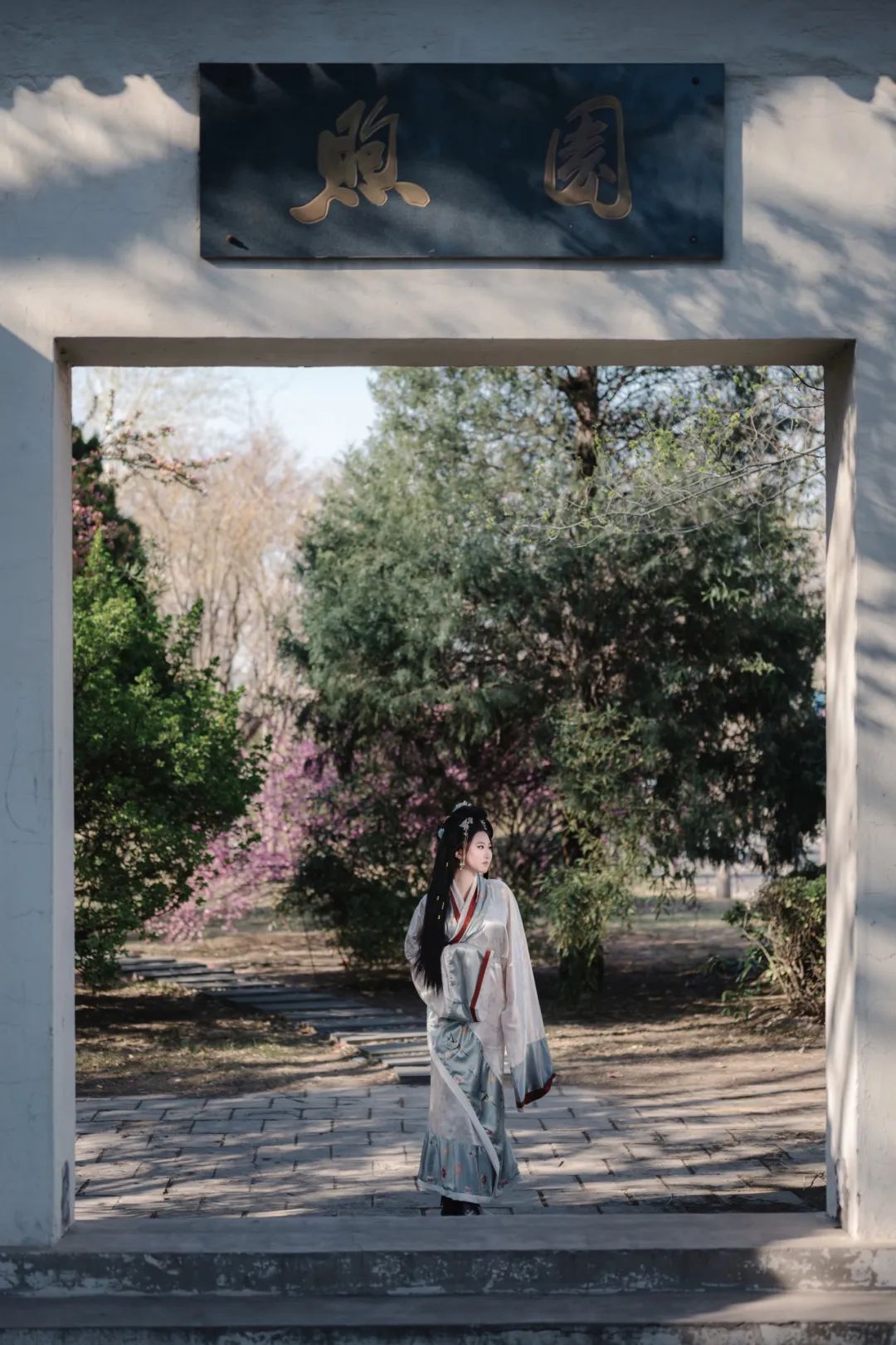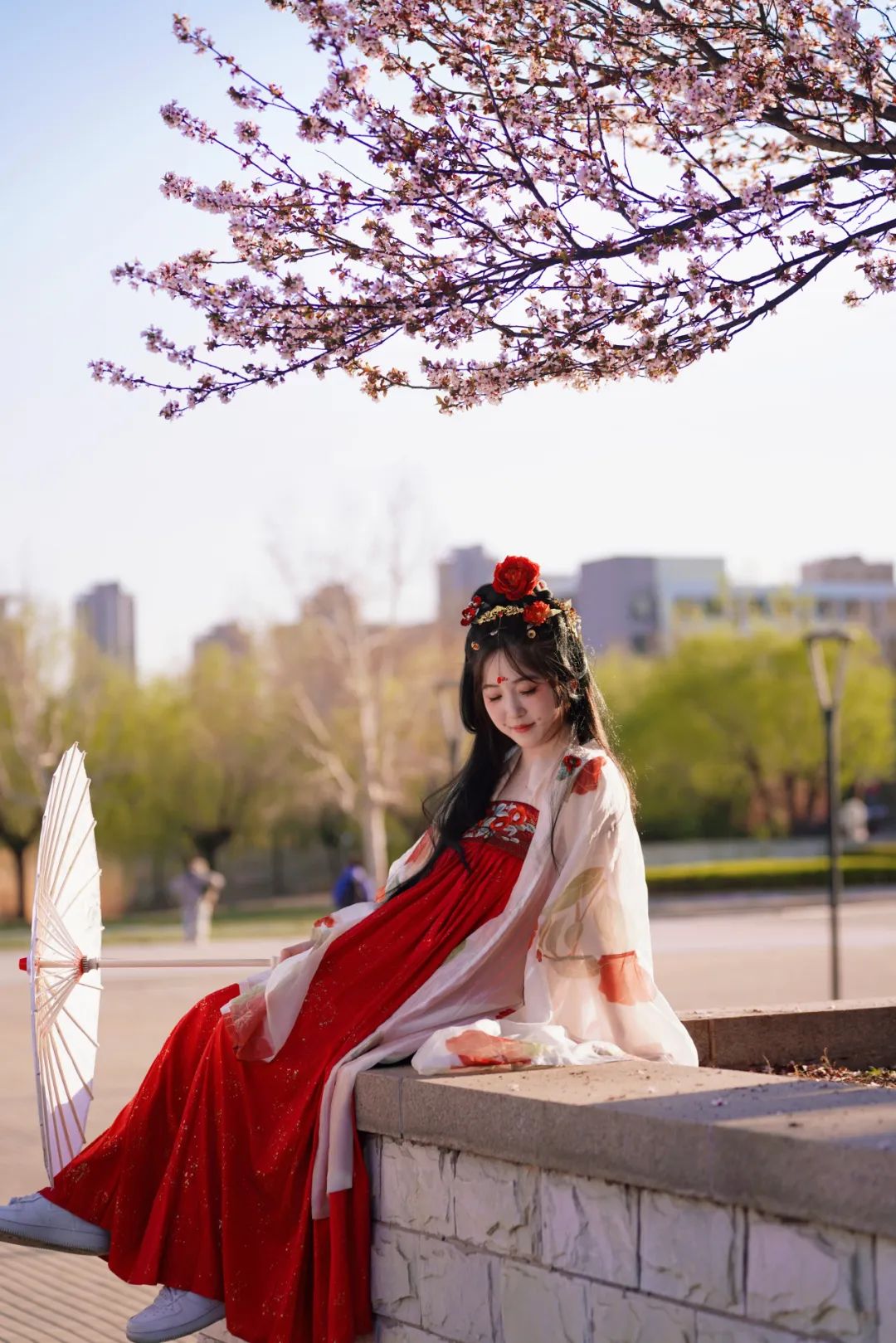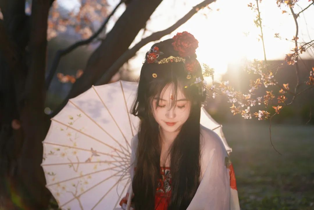 当汉服广袖拂过樱花纷扬的走廊