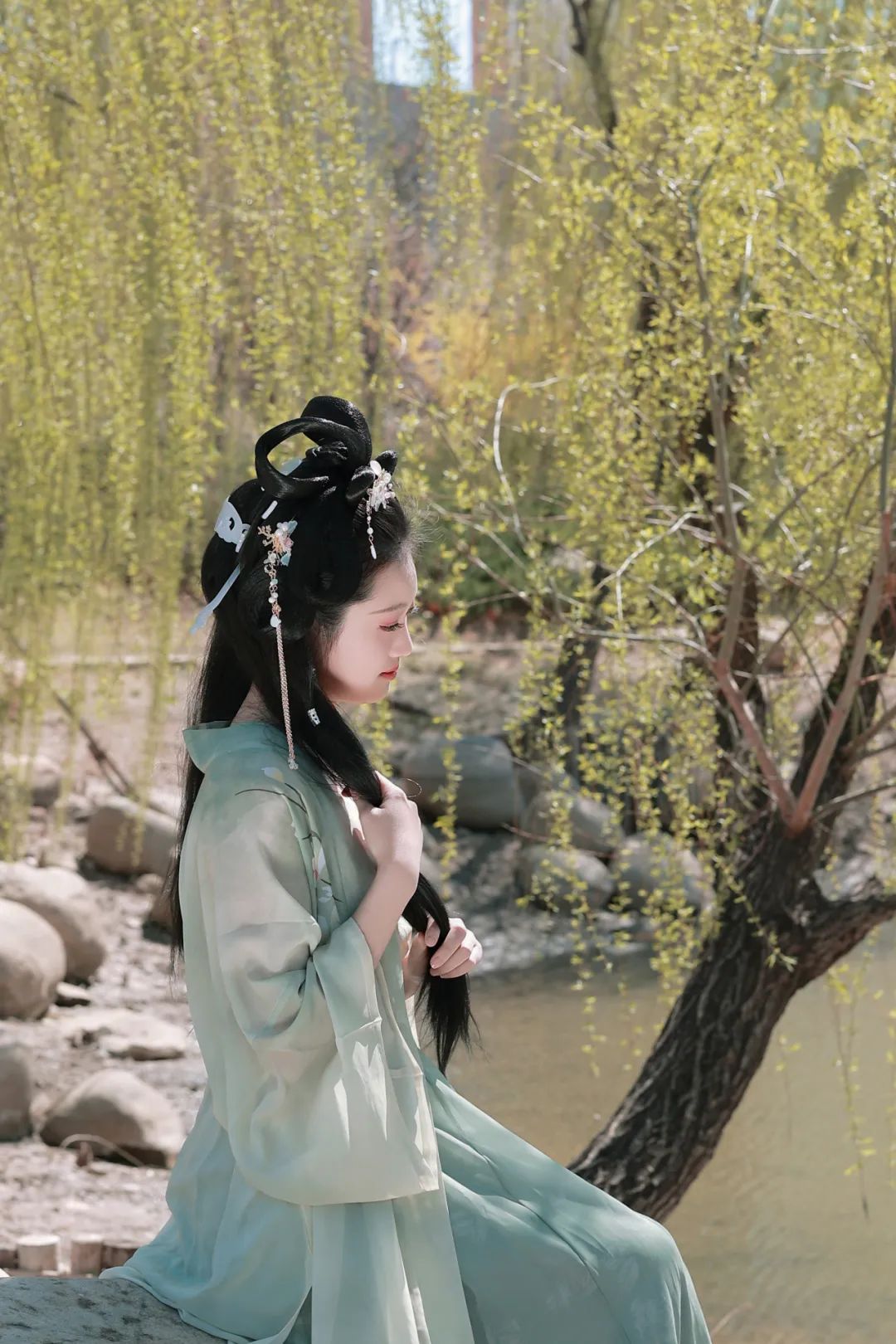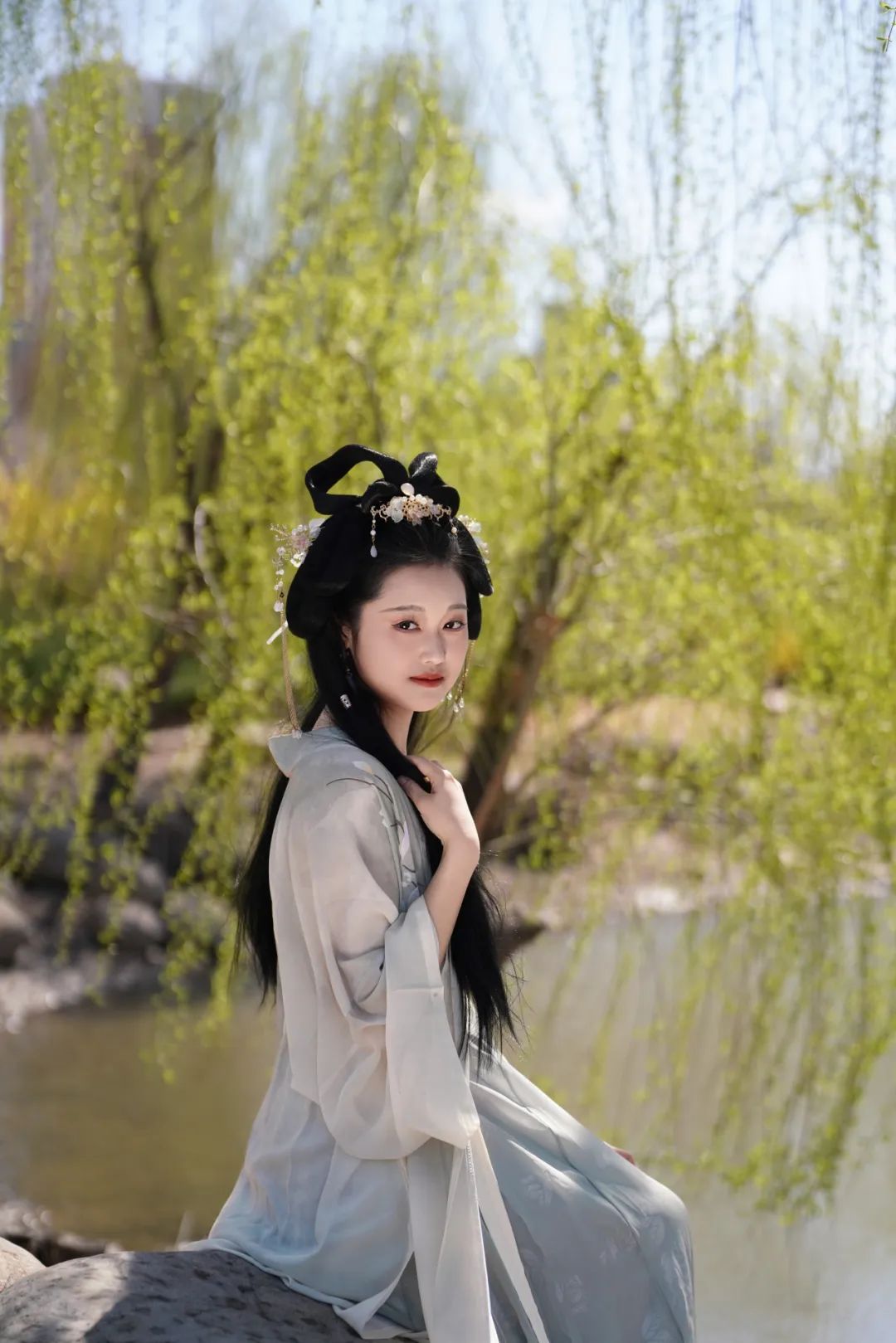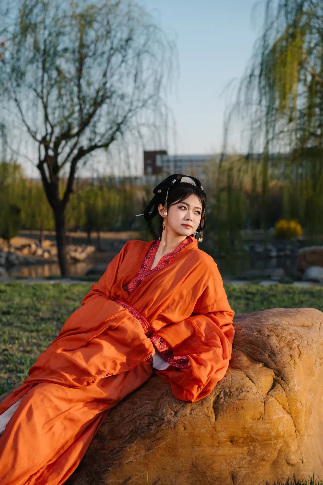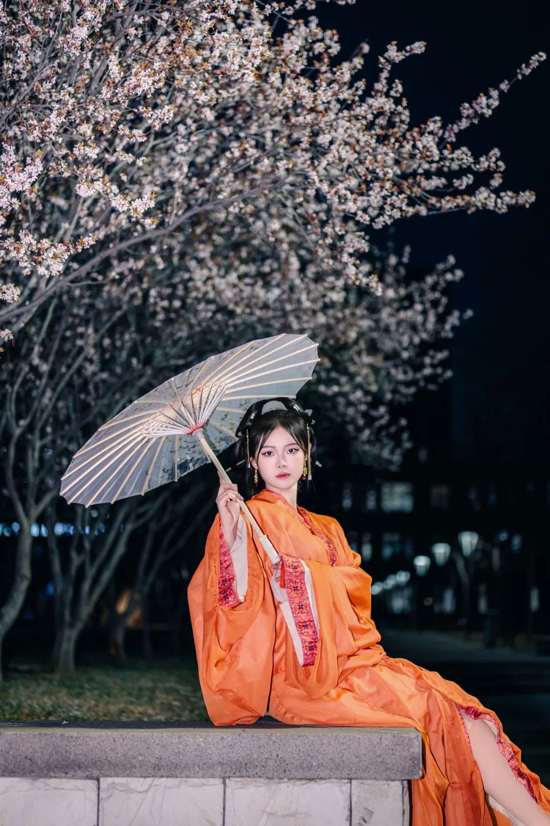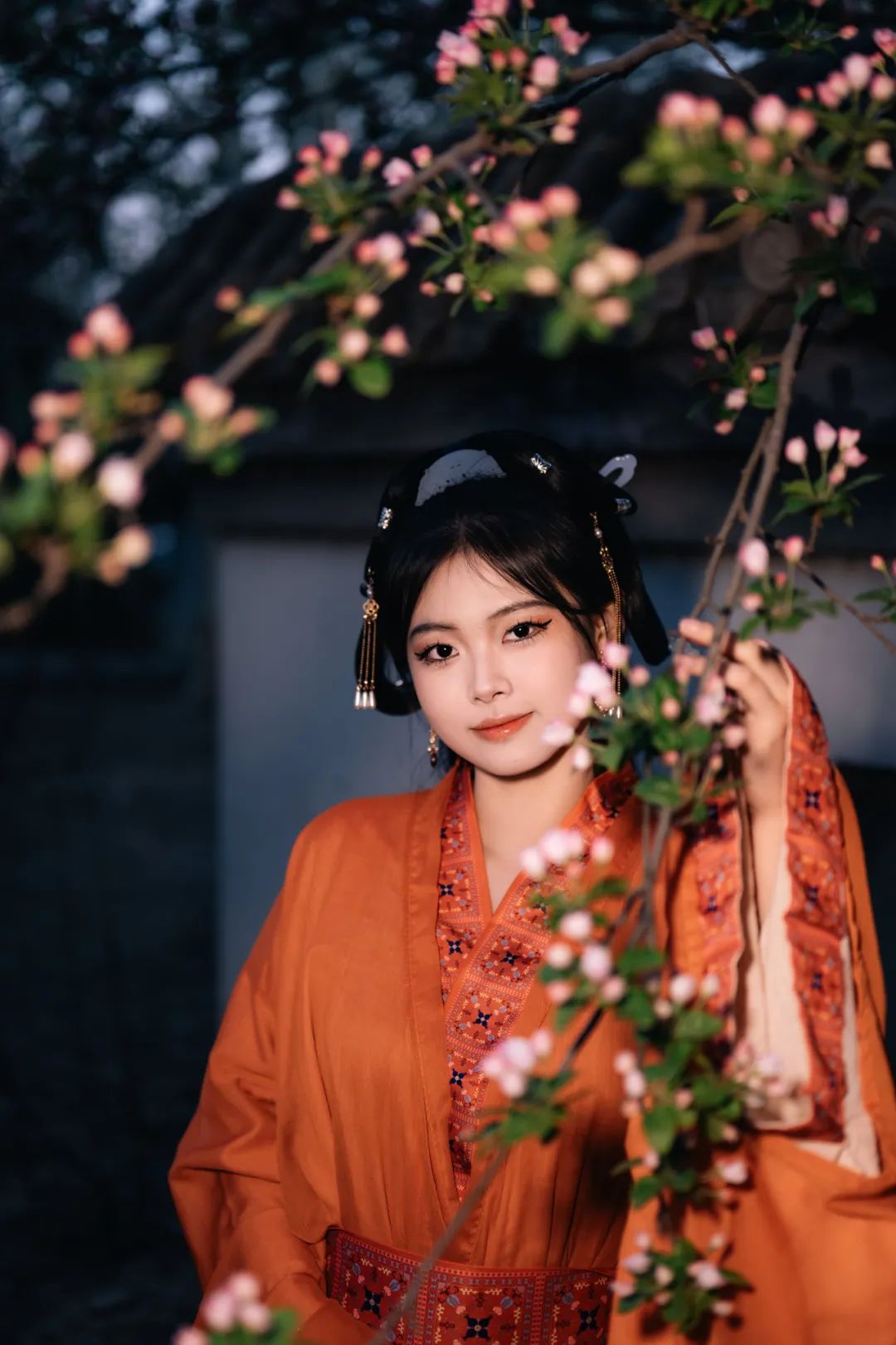 当汉服广袖拂过樱花纷扬的走廊