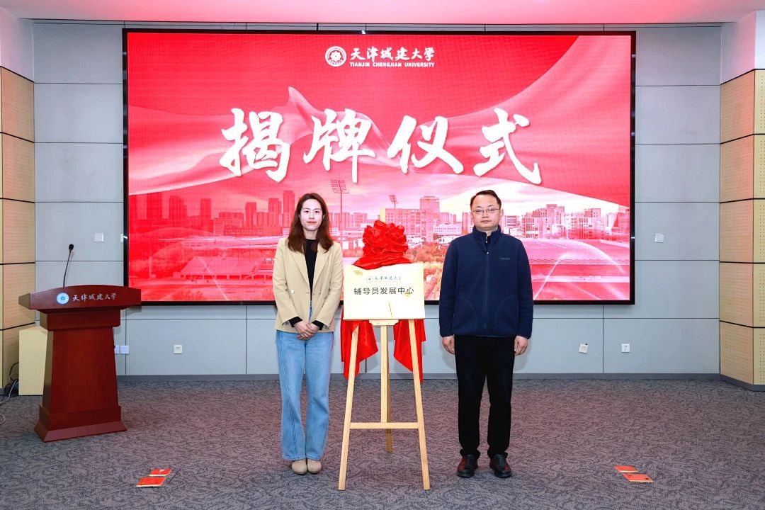 学工部和校团委相关负责同志为辅导员发展中心揭牌。