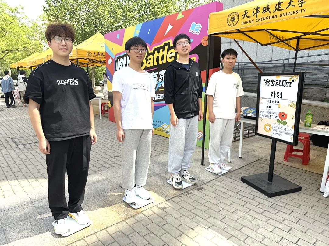 “扫描二维码,生成你们的健康π值!”学生社区启动“宿舍健康π”计划。学生以宿舍为单位或跨楼自由组建“减脂搭子”,依托流动智能体脂秤建立体重、BMI、三围动态档案。食堂同步推出减脂套餐,凭运动打卡即可兑换福利券。活动吸引百余组学生参与,明德斋某宿舍立下全员腰围平均缩减1.5cm的“flag”,誓言通过科学管理冲击“排行榜”冠军。