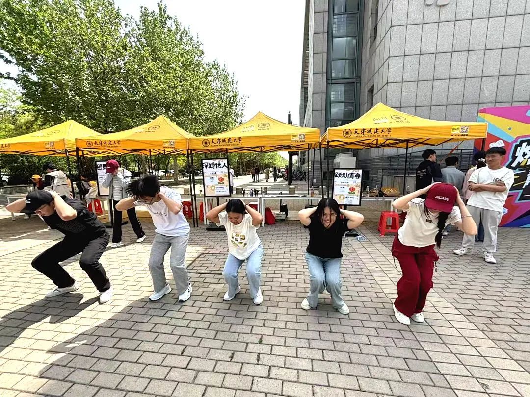 在“5×N”时空快闪行动中,学生社区联合S联盟街舞社、土木学院、环境学院组成“燃脂特工队”,一日五场快闪以精准战术突袭校园五大用餐高峰场景,形成“人潮漩涡”。伴随《青春魅力快》《BangBang》等动感节奏与活力十足的音乐,百余名学生放下手机自发加入“健身局”,用街舞、减脂操打破空间次元壁。