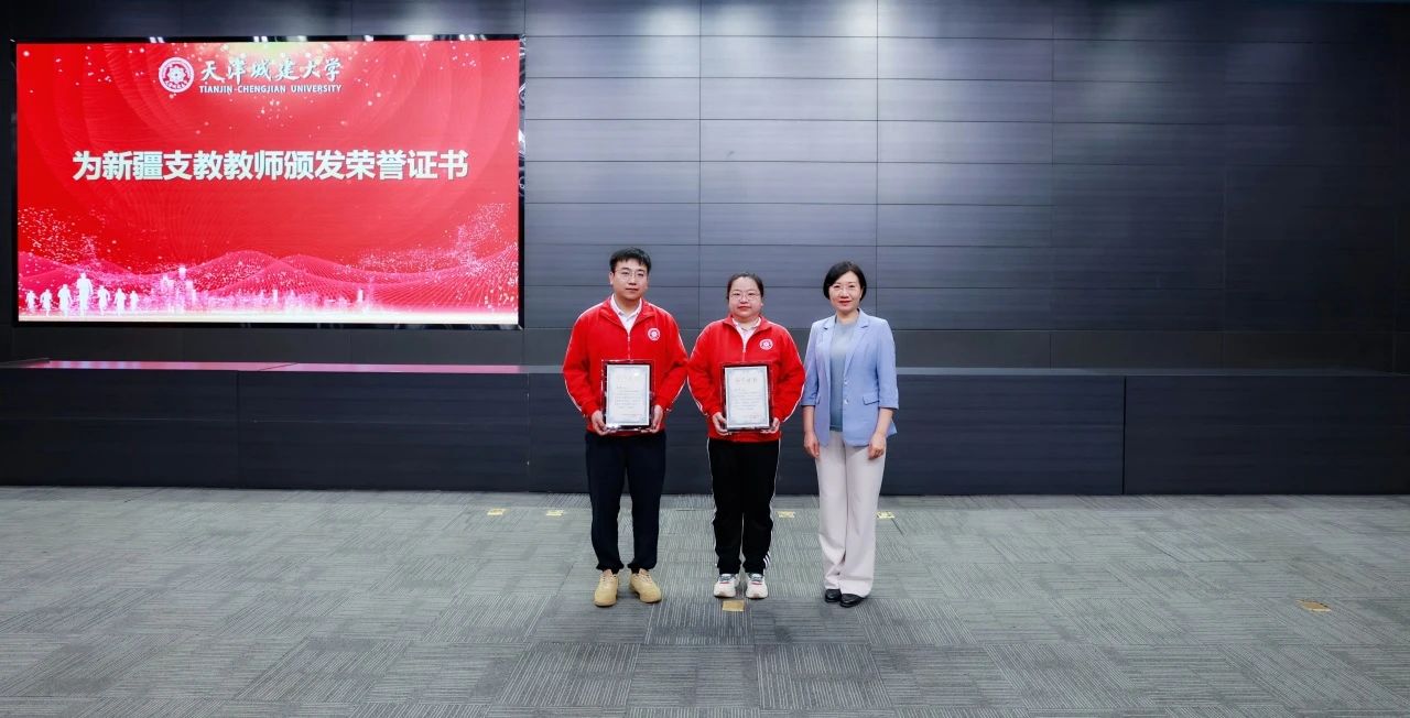 王健和孙旭卓为新疆支教学生颁发荣誉证书