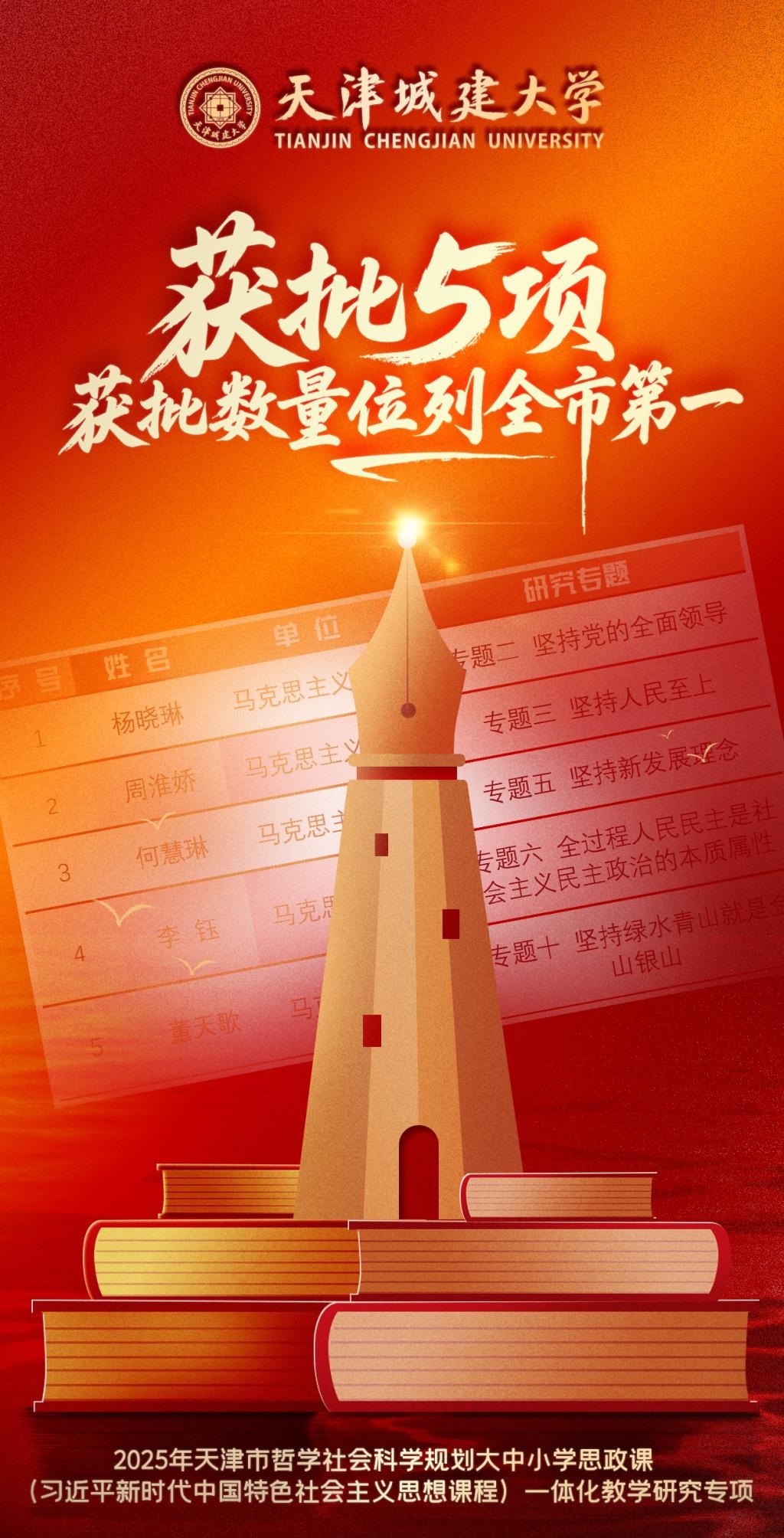 近日,2025年天津市哲学社会科学规划大中小学思政课一体化教学研究专项立项名单公示,我校获批5项,获批数量位列全市第一。