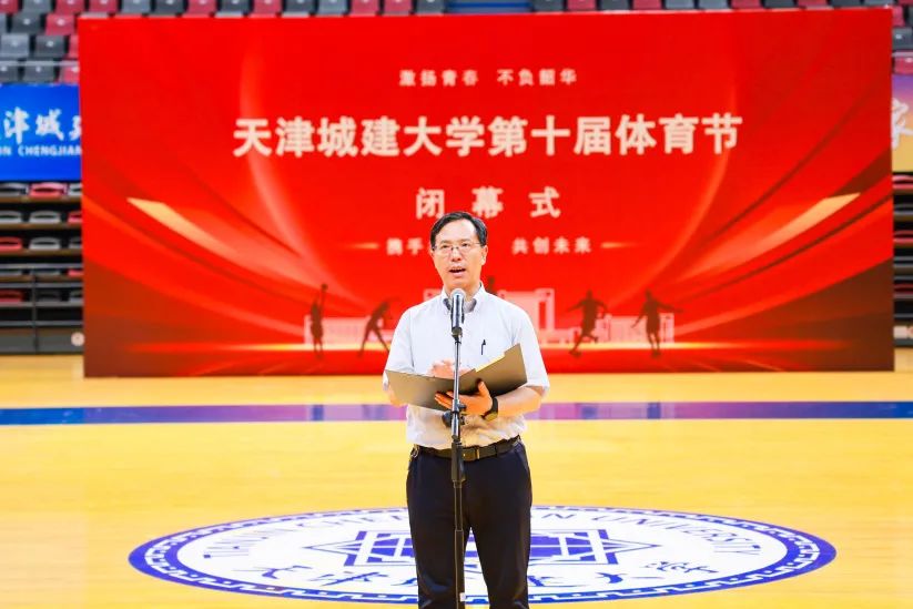 闭幕式伊始,体育部主任王建华汇报第十届体育节及学校体育工作情况。他表示,本届体育节在学校的有力领导与各单位的密切配合下,组织周密、参与度高,取得了显著的体育育人成效,呈现出众多亮点,获得了圆满成功。